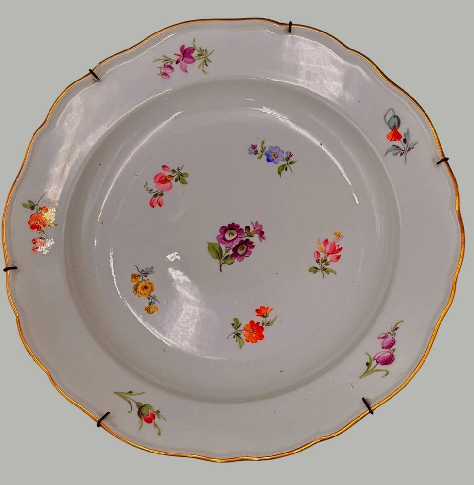 kl. Teller "Meissen" um 1870, Knaufschwerter, Streublumen,, 1.Wahl, D-21 cm [1]