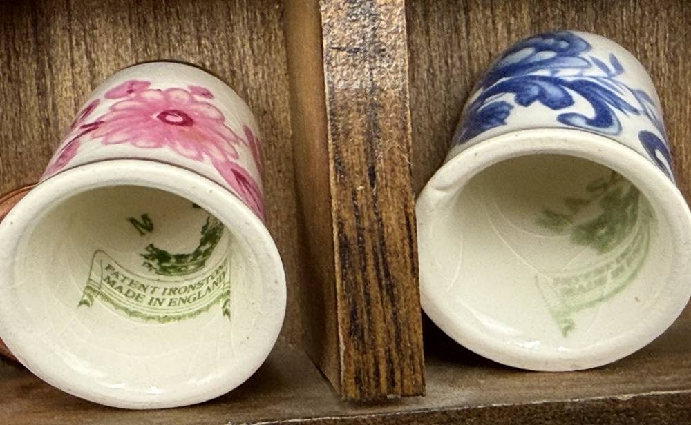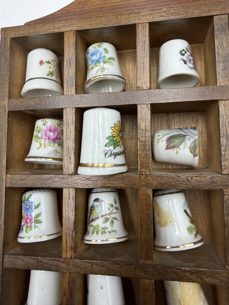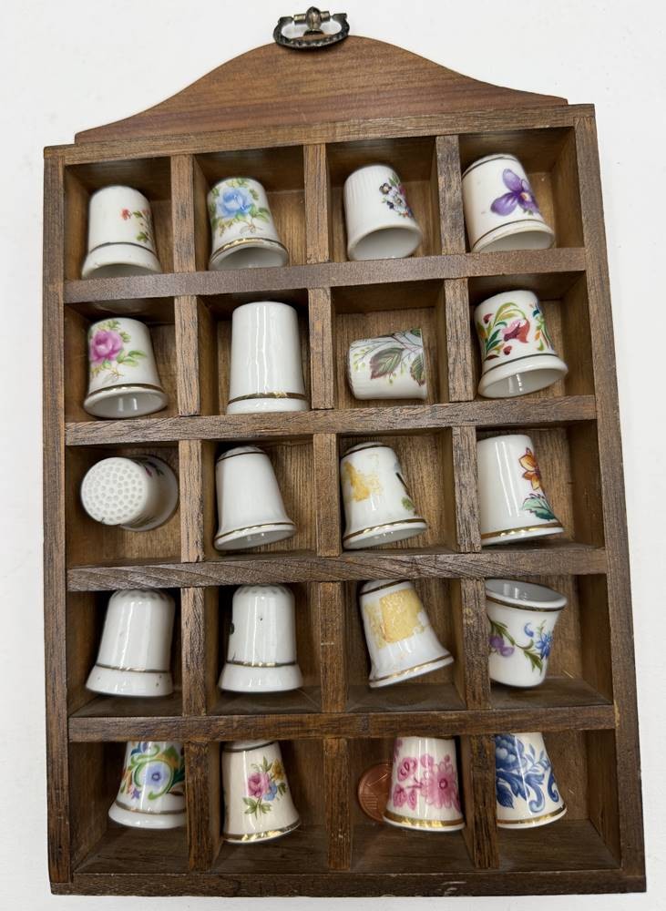 kl. Wandregal mit 20 div. Porzellan-Fingerhüten, 20x15 cm [1]