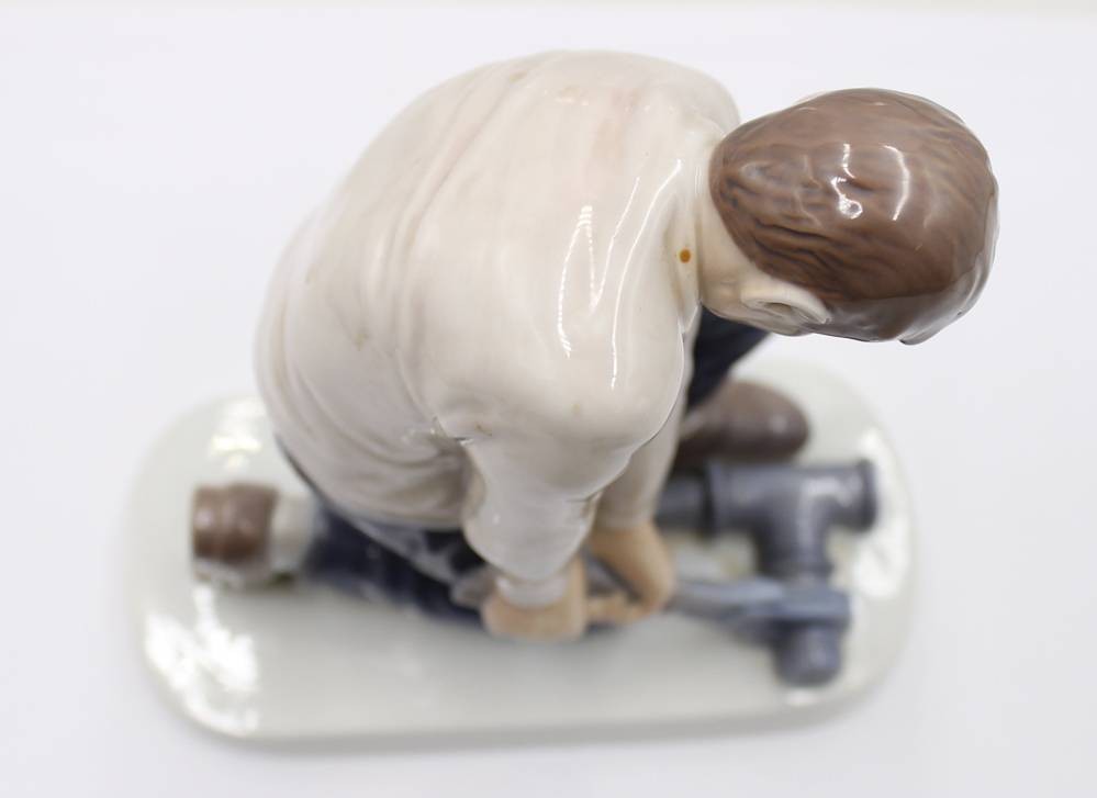 Klempner, Bing & Gröndahl, 20. Jhd., u. mon. PHC, Modellnr. 2432, polychrom staffiert in Unterglasurfarben, H- 21,5 cm, 1x Schleifstrich [1]