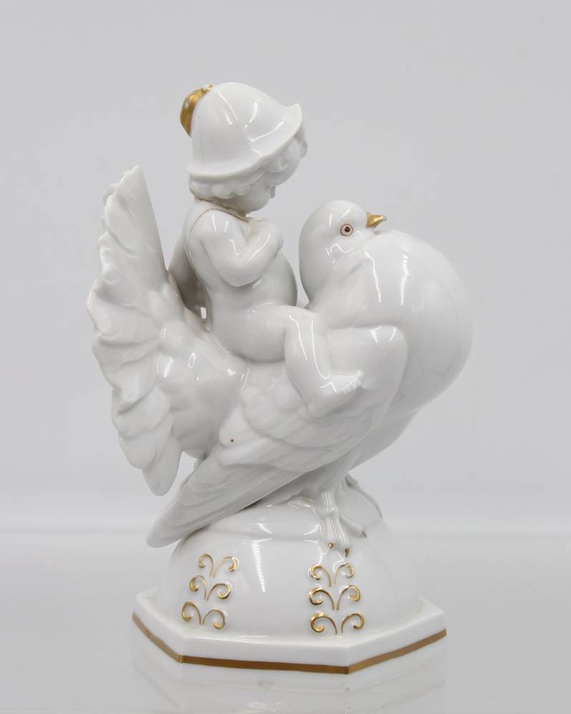 Knabe auf Taube reitend, Katzhütte, weiß mit Goldstaffage, ca. H-15cm [1]