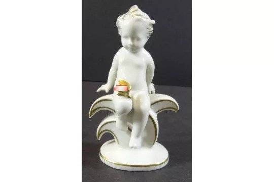Knabe mit Schmetterling "Metzler&Ortloff", Golddekor, ein Flügel abgebrochen!, H-11 cm [1]