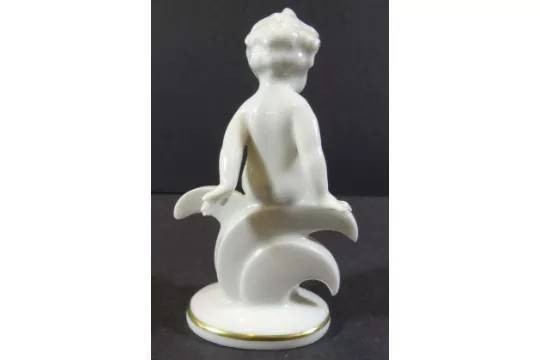 Knabe mit Schmetterling "Metzler&Ortloff", Golddekor, ein Flügel abgebrochen!, H-11 cm