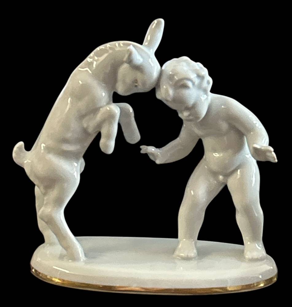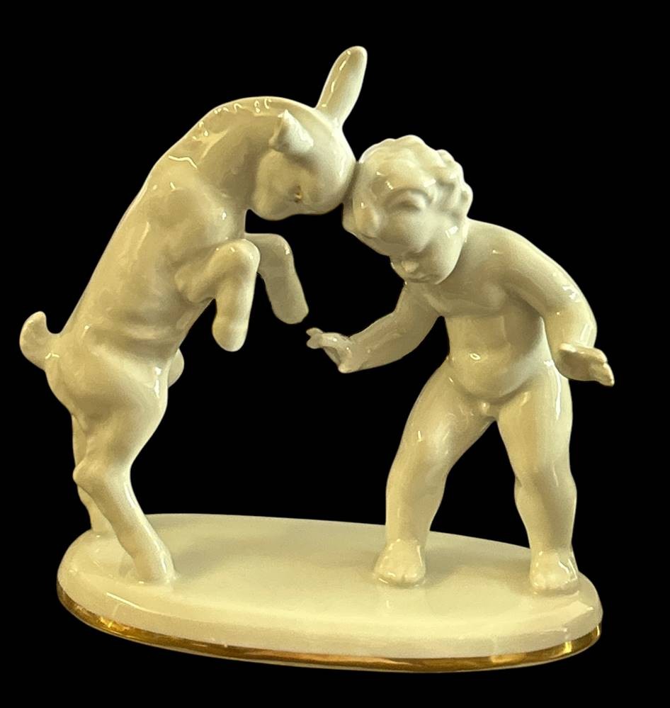 Knabe mit Zicklein "Gerold" weiss, H-14 cm, B-13 cm [1]