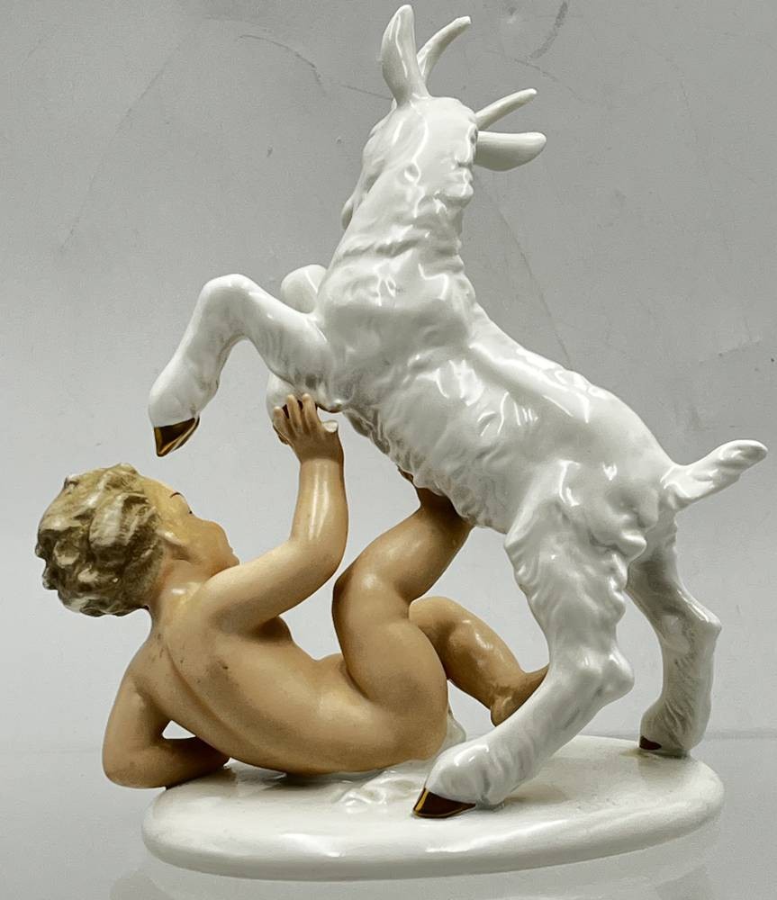 Knabe mit Zicklein "Wallendorf" bemalt, 1x fehlt kleiner Finger,, H-20 cm [1]