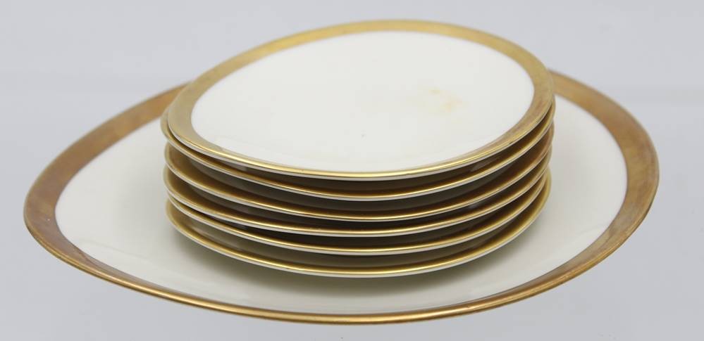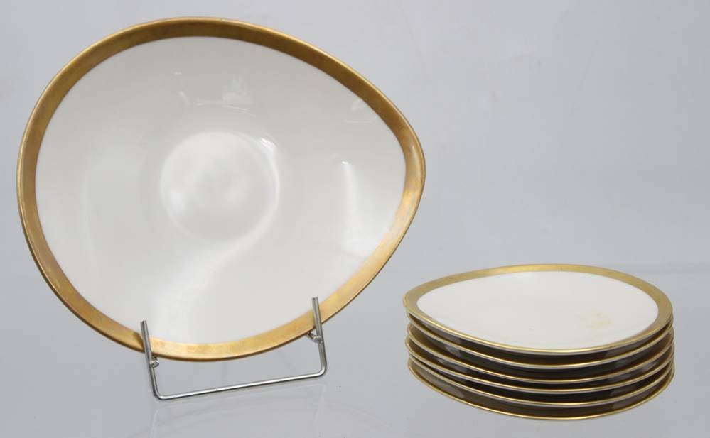 Konfekt-Set, 7tlg., Goldrand, gemarkt, gr. Schale 19,5 x 16,5cm [1]