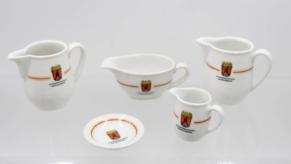 Konvolut Geschirr, Heinrich, Fischereihafenrestaurant Cuxhaven, 2 Milchkännchen, kl. Sauciere, 15x kl. Milchkännchern, 14x kl. Tellerchen [1]