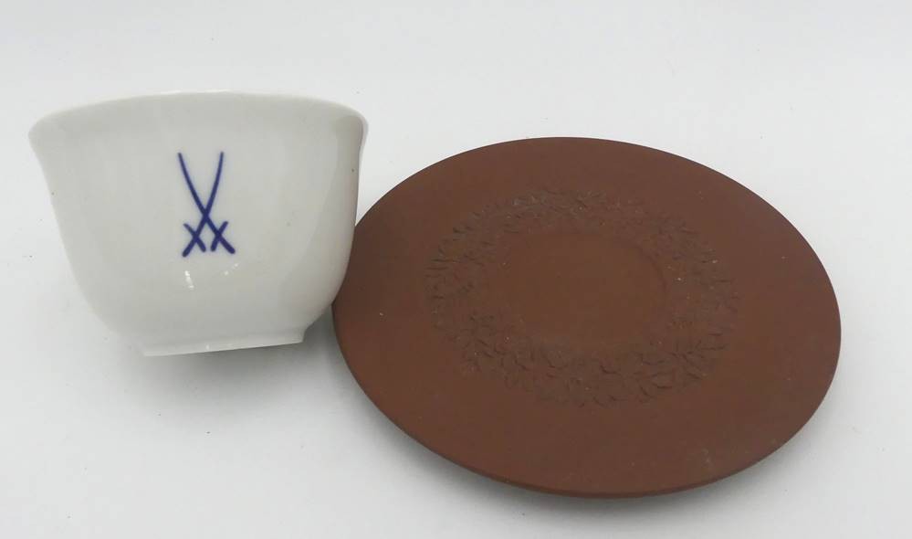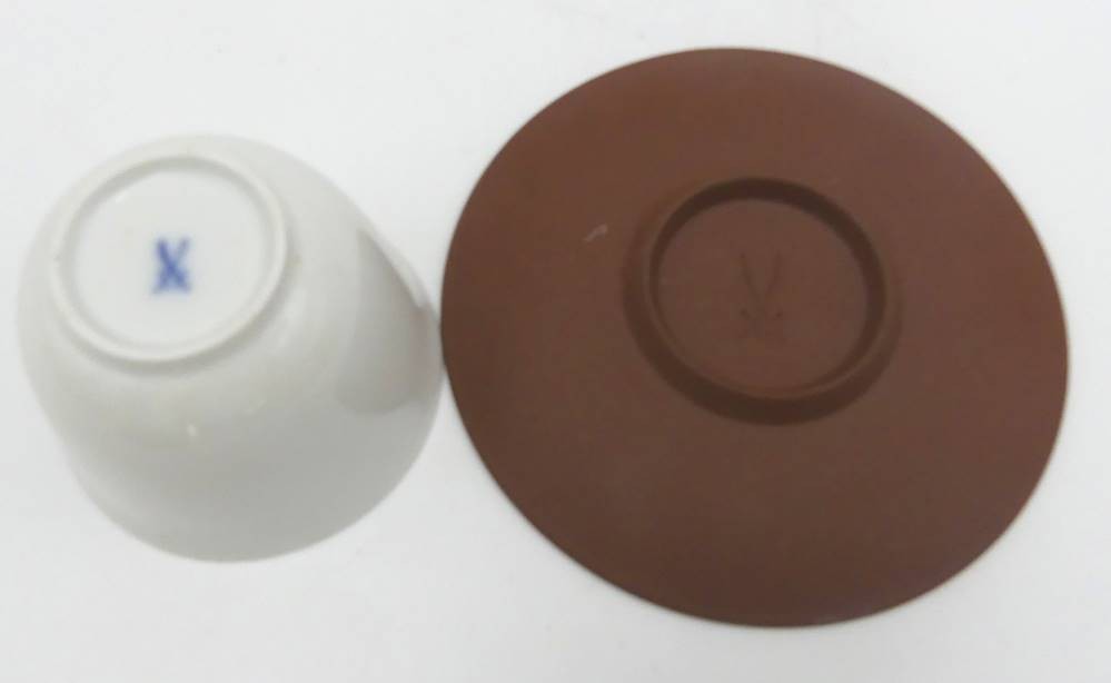 Koppchen mit Untertasse "Meissen", 1.Wahl, U.T Böttger-Steinzeug [1]