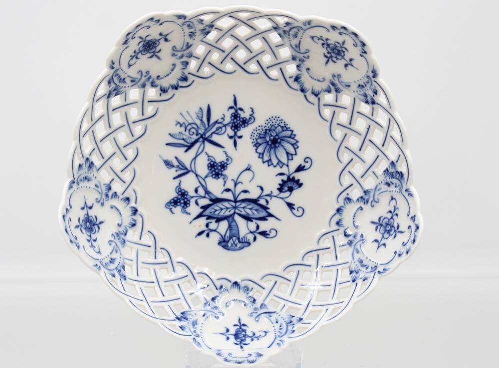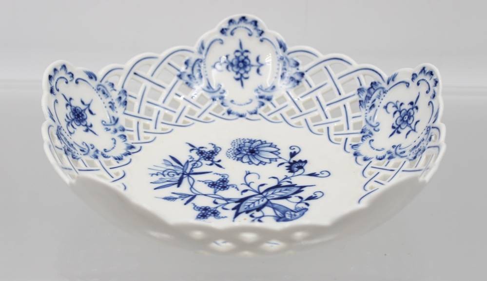 Korbschale, Meissen, Zwiebelmuster, 2 Schleifstriche, ca. H-5cm D-19cm [1]