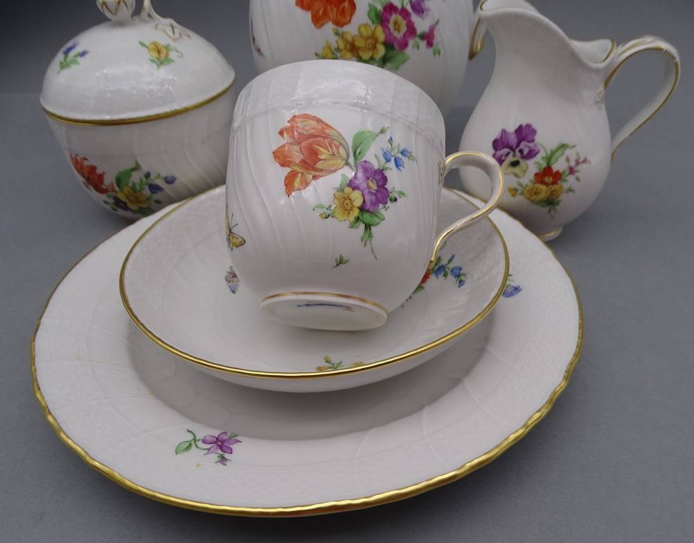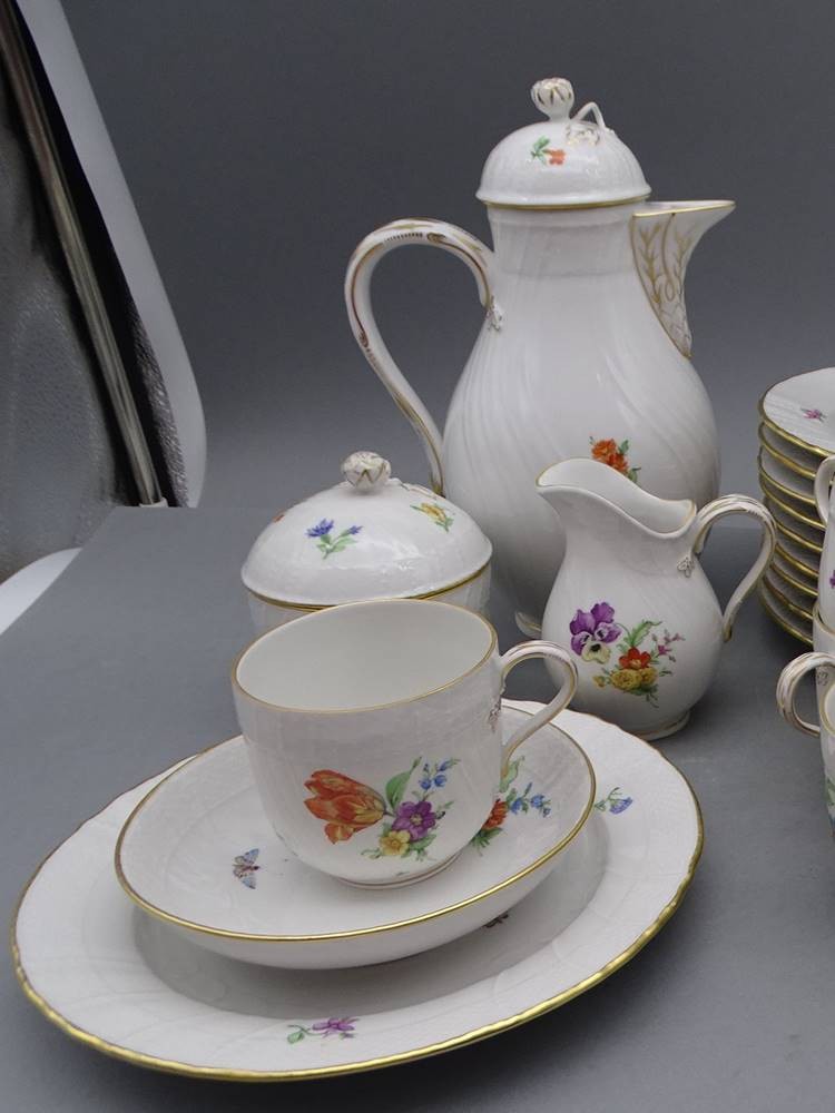 KPM Berlin Kaffeeservice für 6 Personen, 21 Teile, Blumenbemalung mit Insekten, Goldstaffage, Form Neuosier Prunk [1]