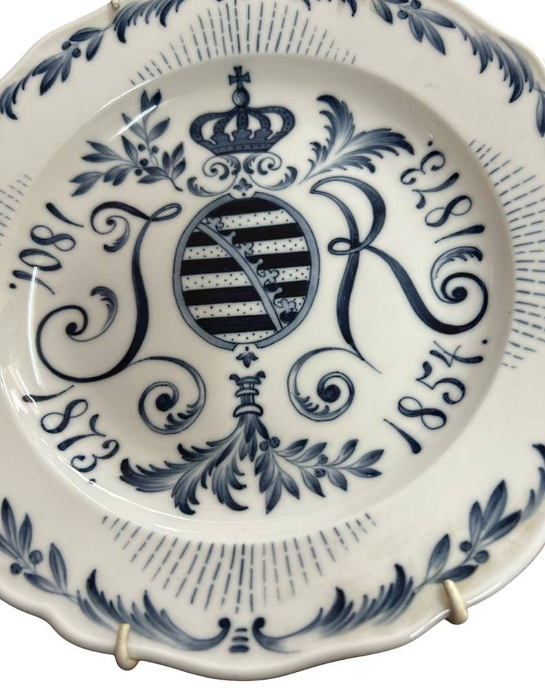 Krönungsteller 1801-1873 Wappen von Sachsen mit Initialien JH, Meissen, 1. Wahl, D-24 cm