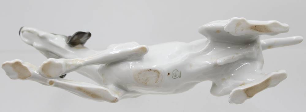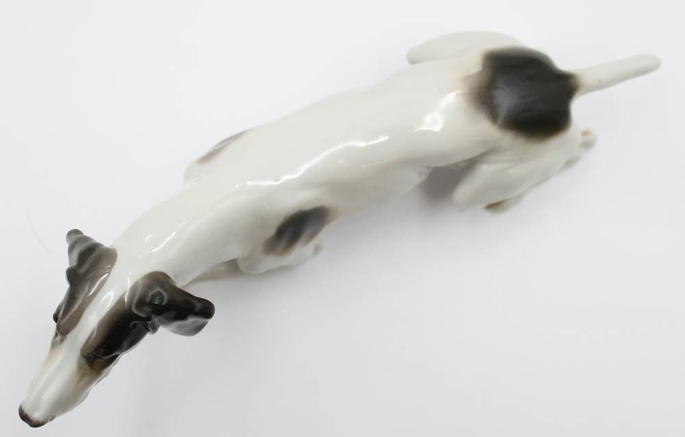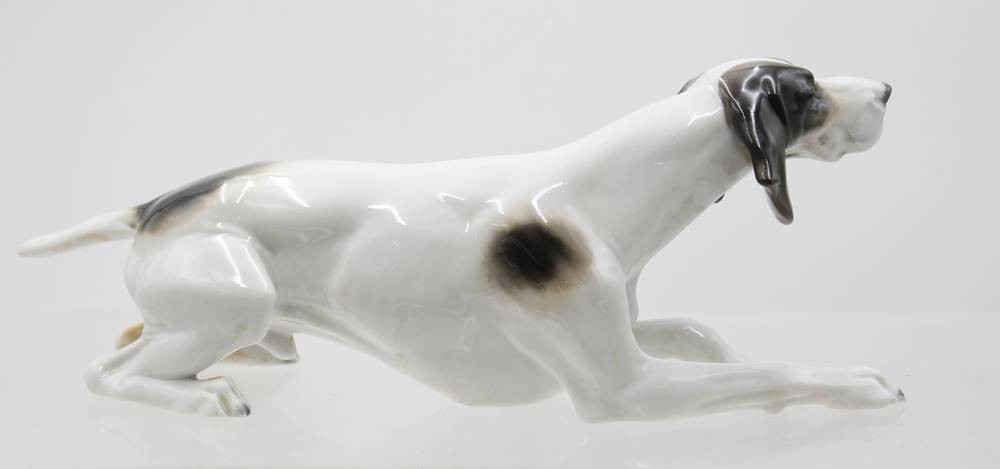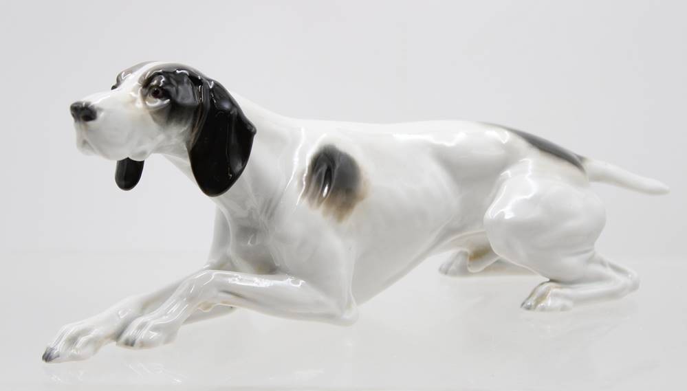 liegender Jagdhund, Metzler & Ortloff, Unterglasurfarben, ca. H-9,8cm L-25cm [1]