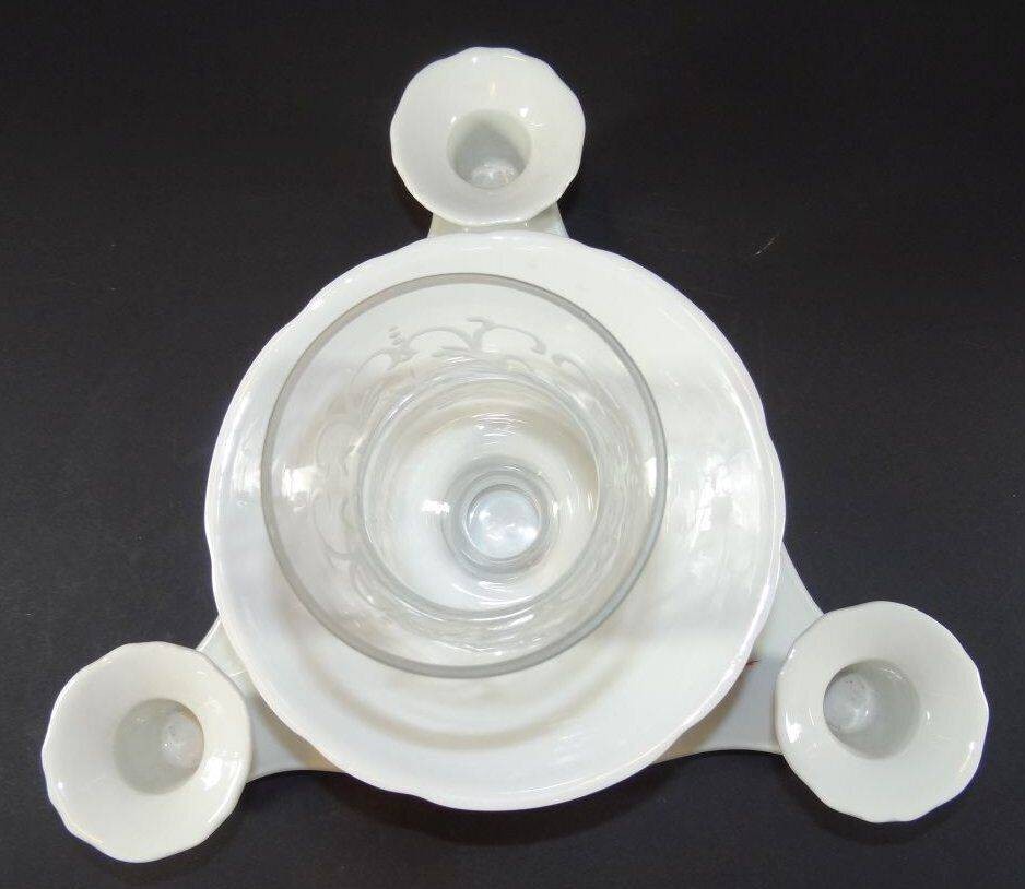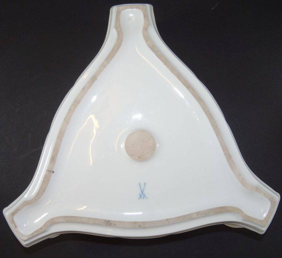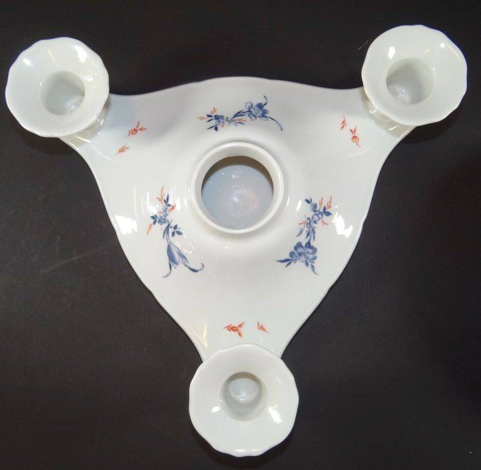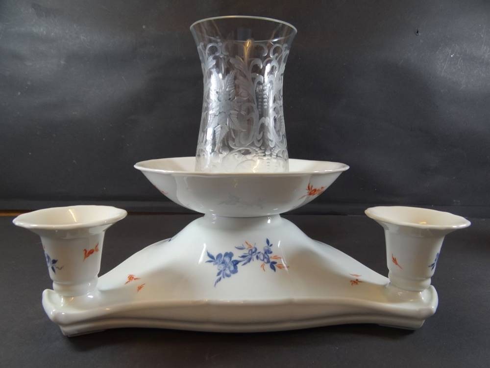 Meissen grosser dreieckiger Kerzenständer, mittig mit Windlicht, 1.Wahl, floral bemalt,3 teilig, H-24 cm, 32x32 cm, Entwurf??