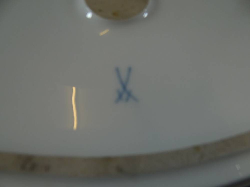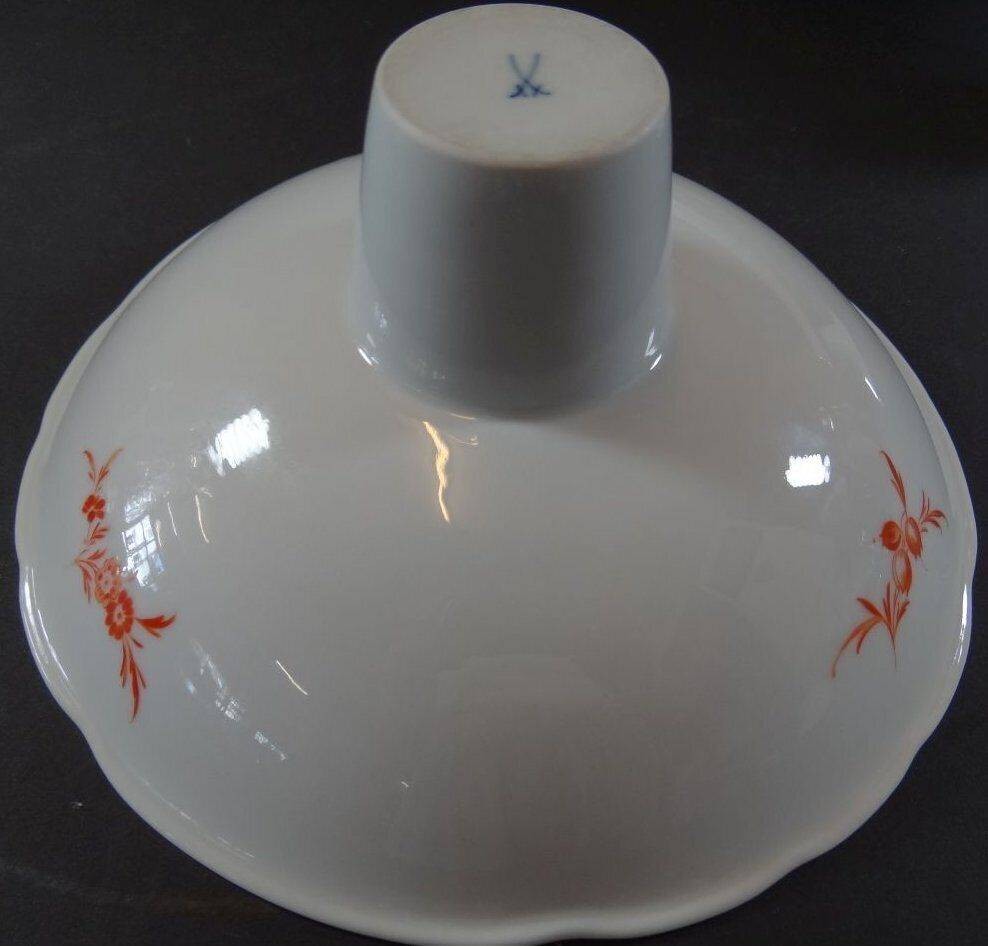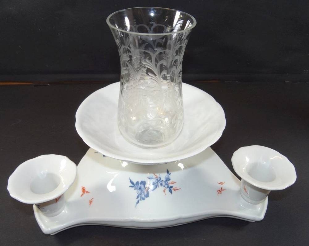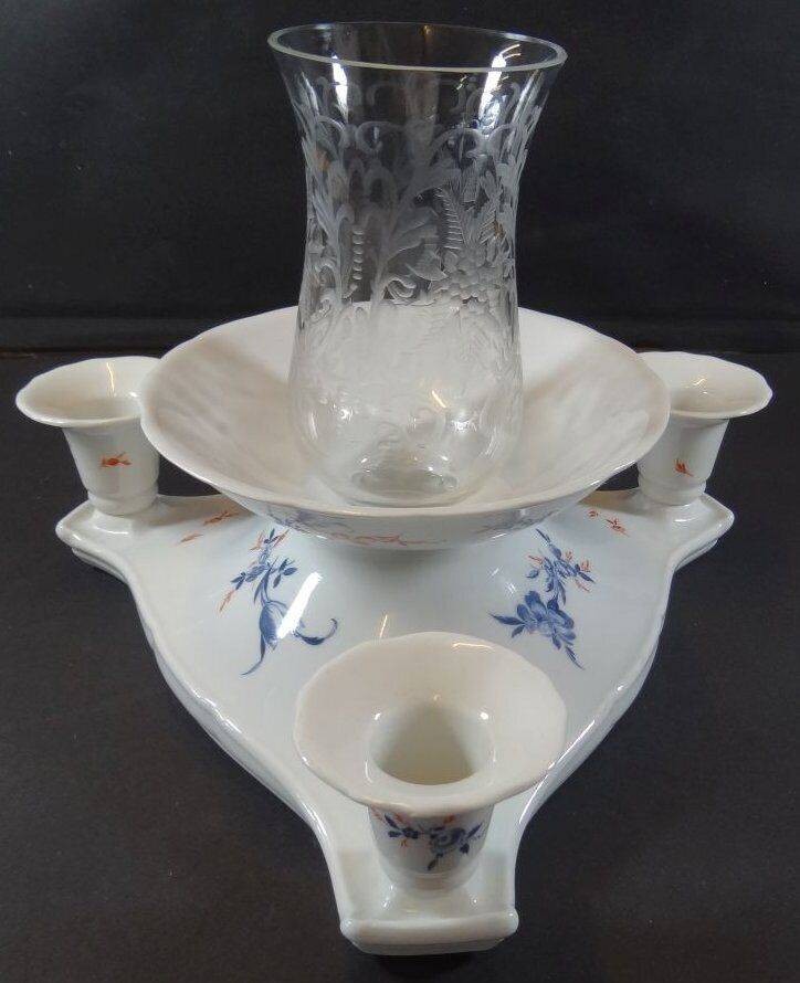 Meissen grosser dreieckiger Kerzenständer, mittig mit Windlicht, 1.Wahl, floral bemalt,3 teilig, H-24 cm, 32x32 cm, Entwurf??