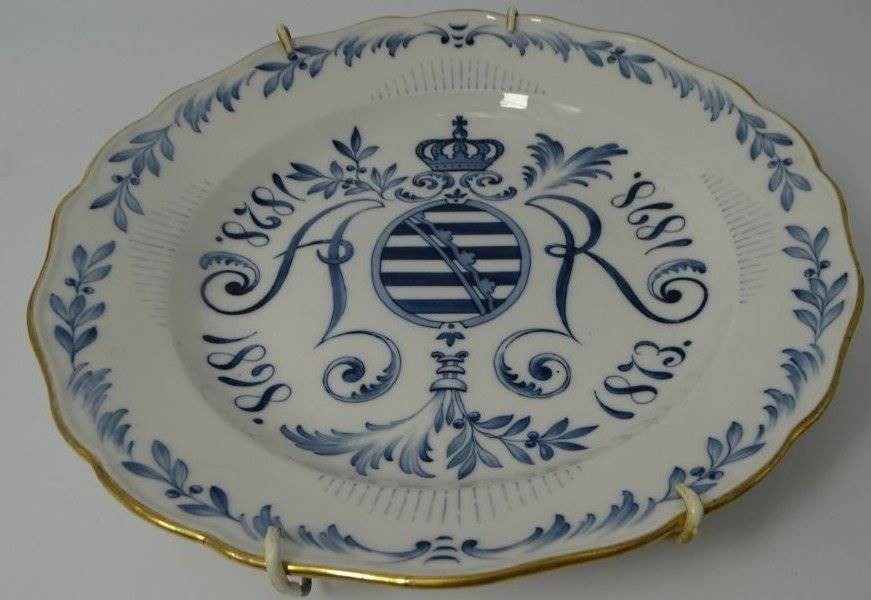 Meissen Teller 1898 Albert von Sachsen 25 J. König, Punktschwerter, 1.Wahl, D-24 cm [1]