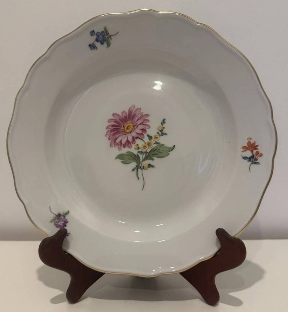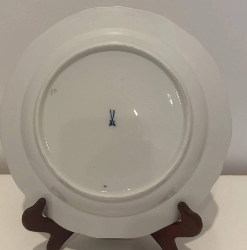 Meissen Teller Blume 3 mittig Goldrand Durchmesser 22cm, Schwerter durchschliffen [1]