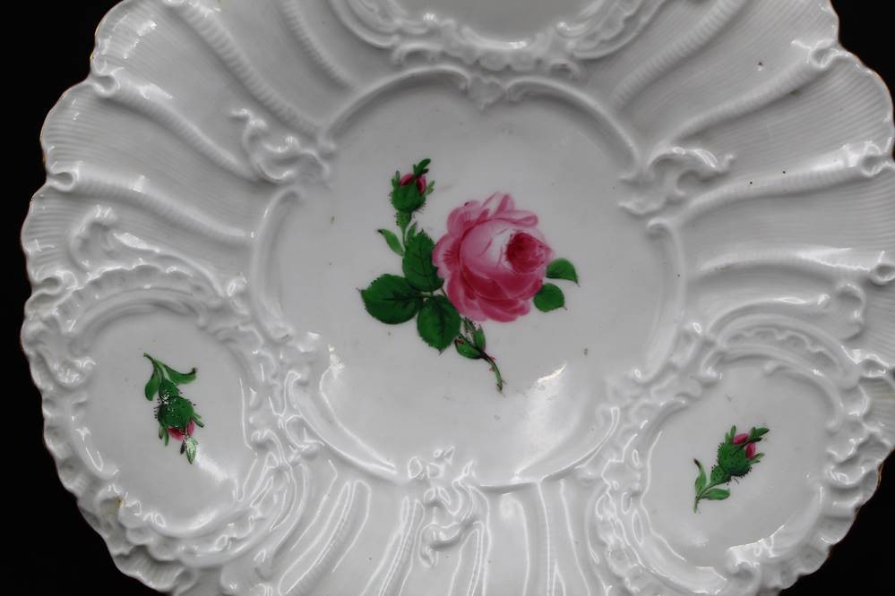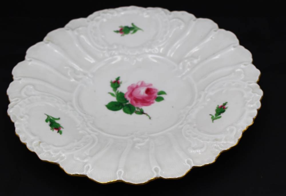 Meissen Zierteller, Rote Rose, mit Reliefdekor, D-24 cm [1]