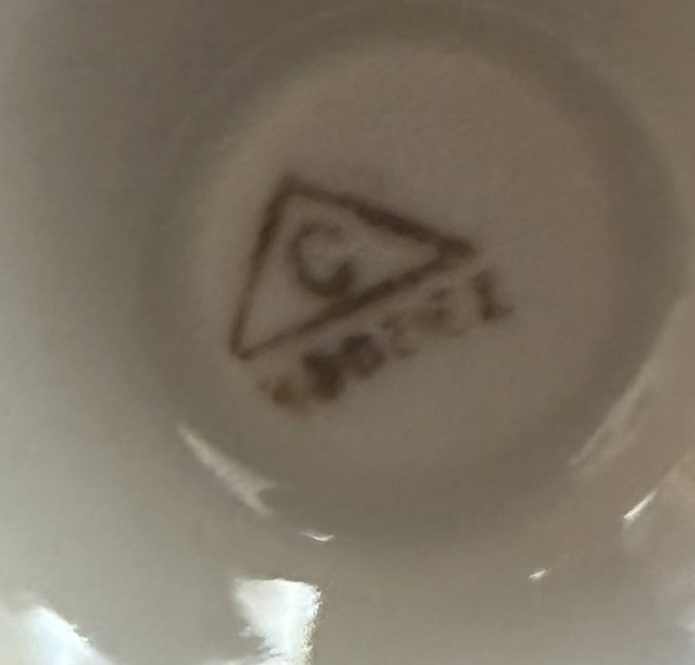 Mocca-Service mit Golddekor, wohl Polen, bei Sahnekännchen Henkel ab [1]