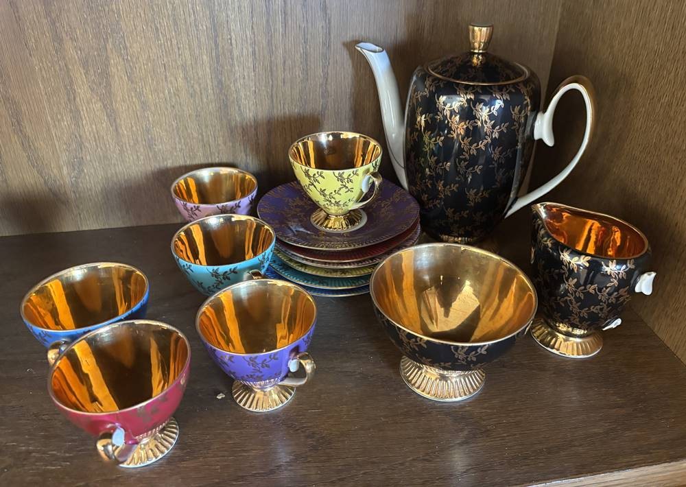Mocca-Service mit Golddekor, wohl Polen, bei Sahnekännchen Henkel ab