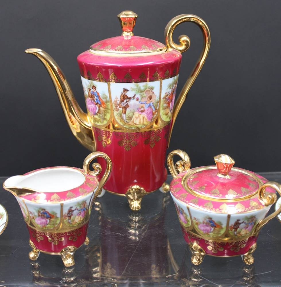 Mokka-Restservice, J.K.W., Decor Carlsbad, Mokkakern, 3x Tassen mit U.T., Kanne H-18,5cm Tassen H-8,5cm [1]