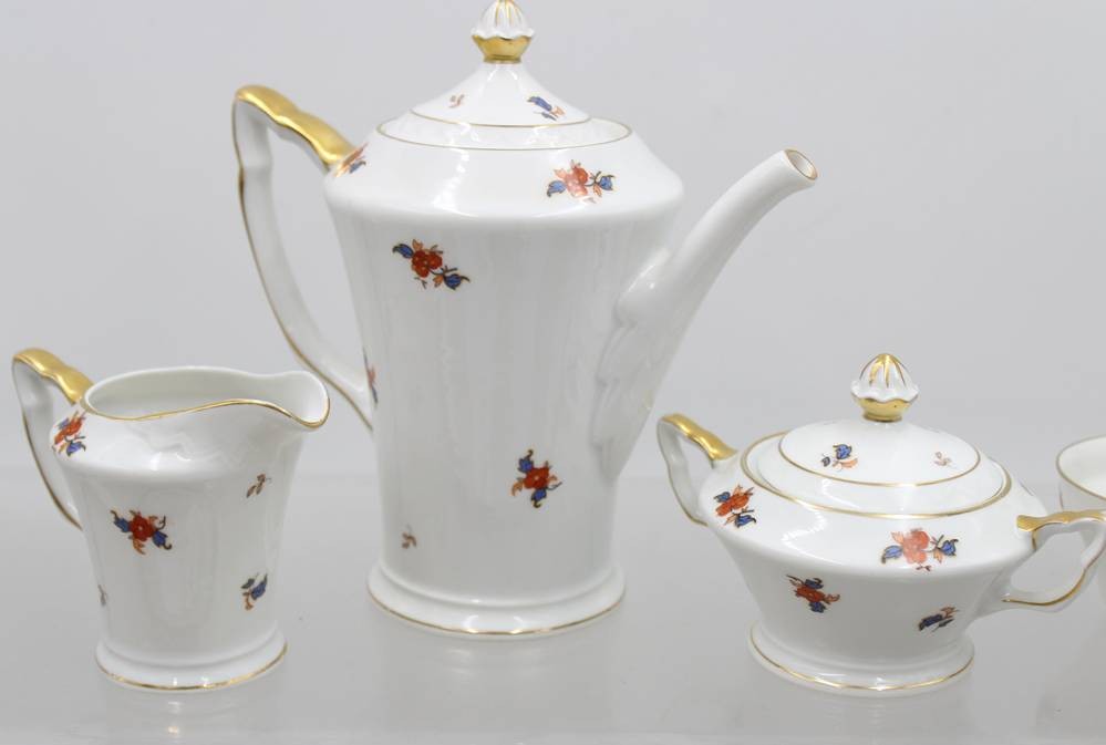 Mokka-Service, Sorau, Art-Déco, für 4 Personen, Kanne H-16,5cm Tassen H-4,2cm [1]