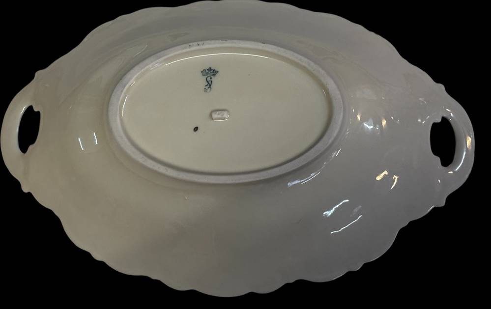 ovale Art Deco Schale mit Blumendekor, H-6 cm, 32x21 cm, Kronenmarke [1]