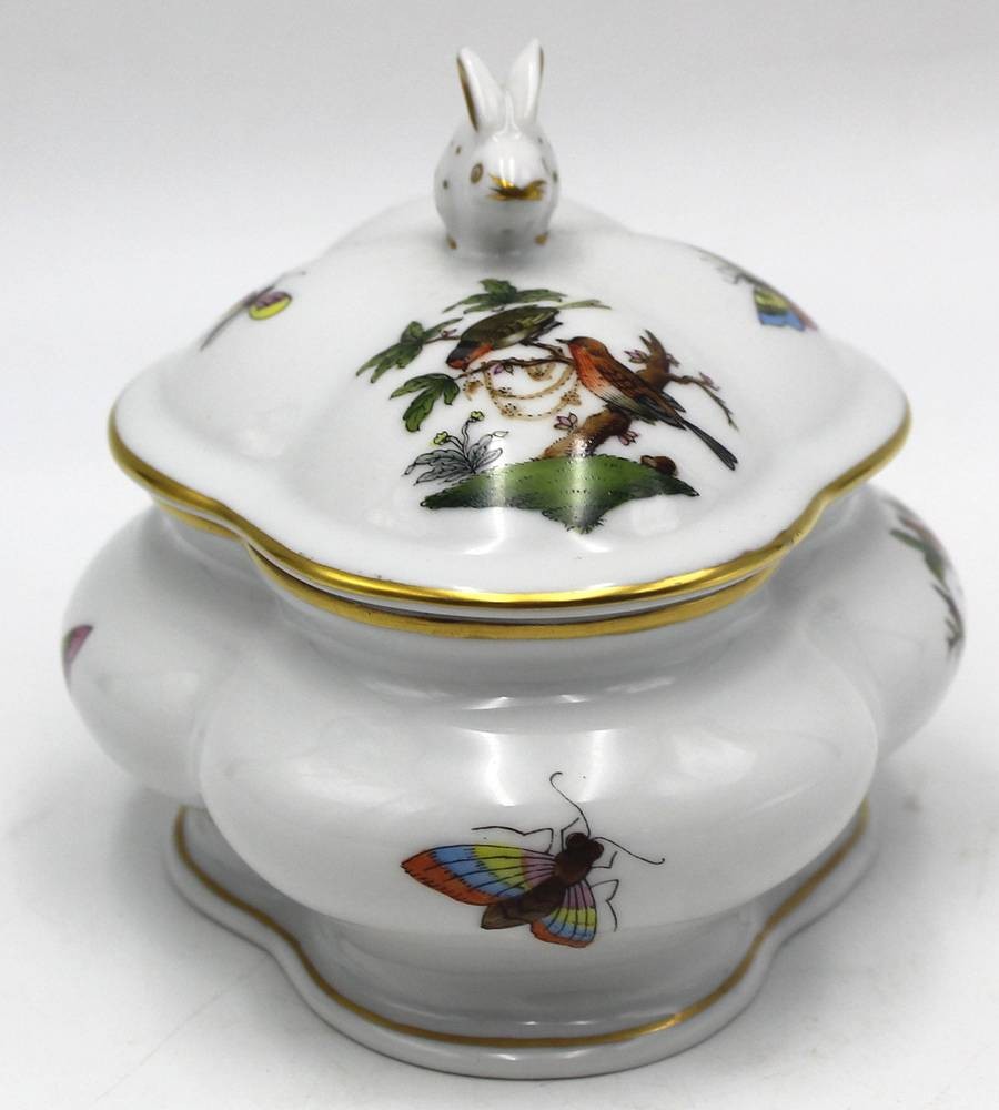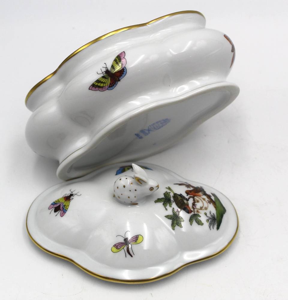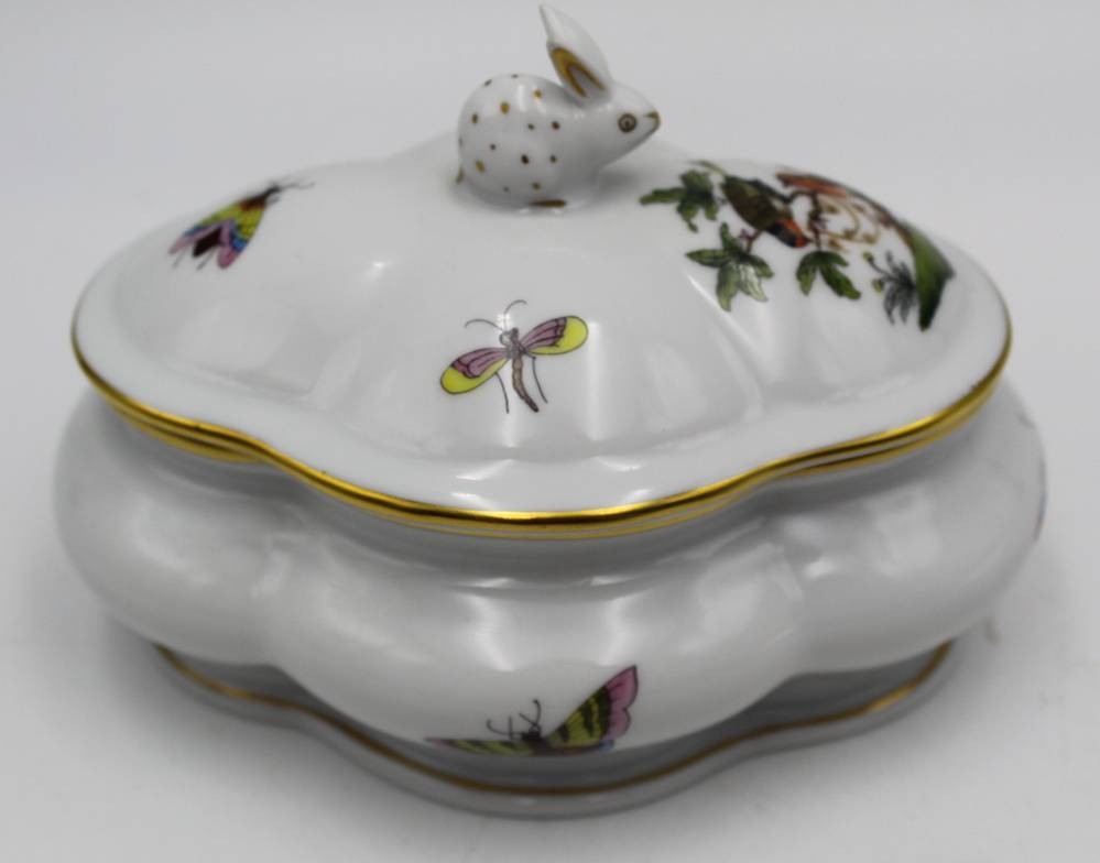 ovale Deckeldose"Herend " Dekor Rothschild, H-10, cm, 14x10 cm, Hase als Deckelbekrönung [1]