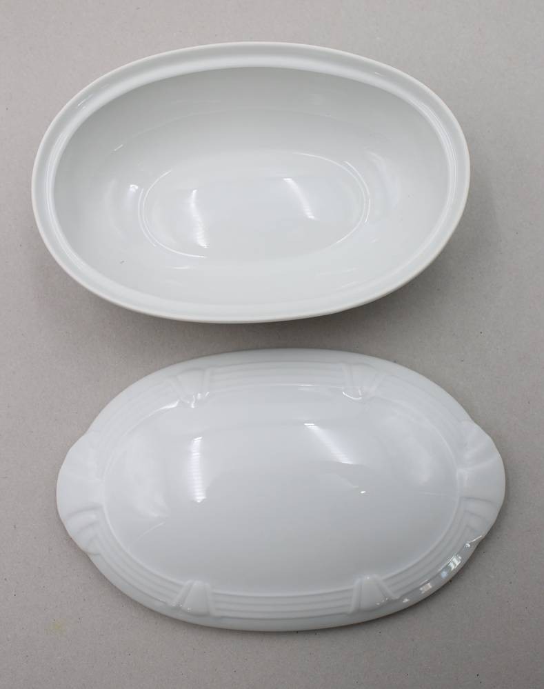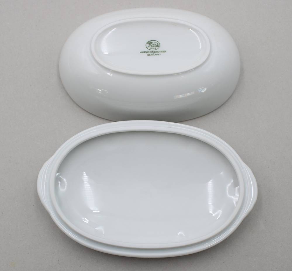 ovale Deckeldose, Hutschenreuther, Weißporzellan, orig. Karton, ca. H-6,5cm B-16,5cm [1]