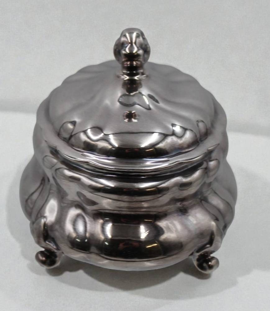 ovale Deckeldose, SPAHR, Feinsilberauflage, guter Zustand, ca. H-12,5cm B-16cm [1]