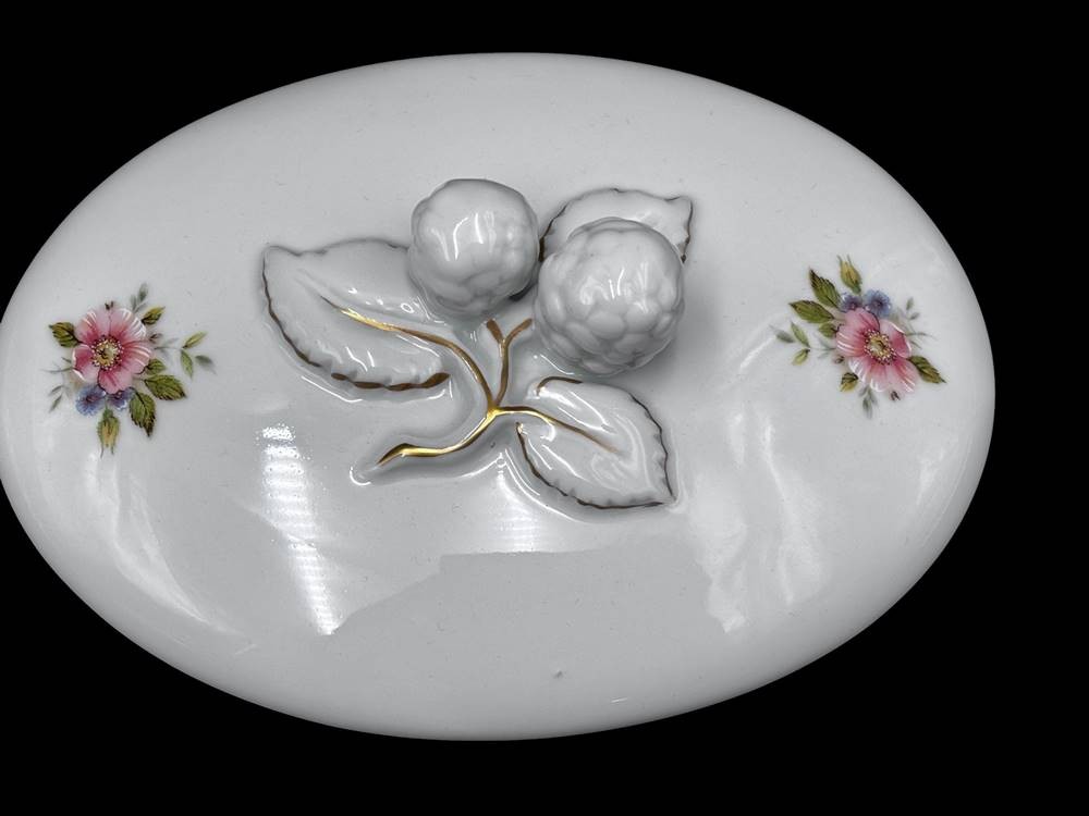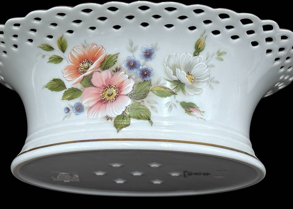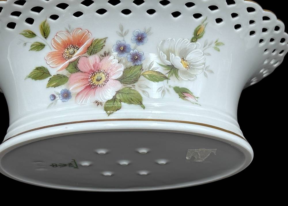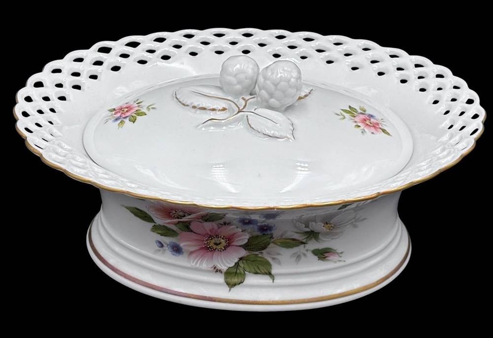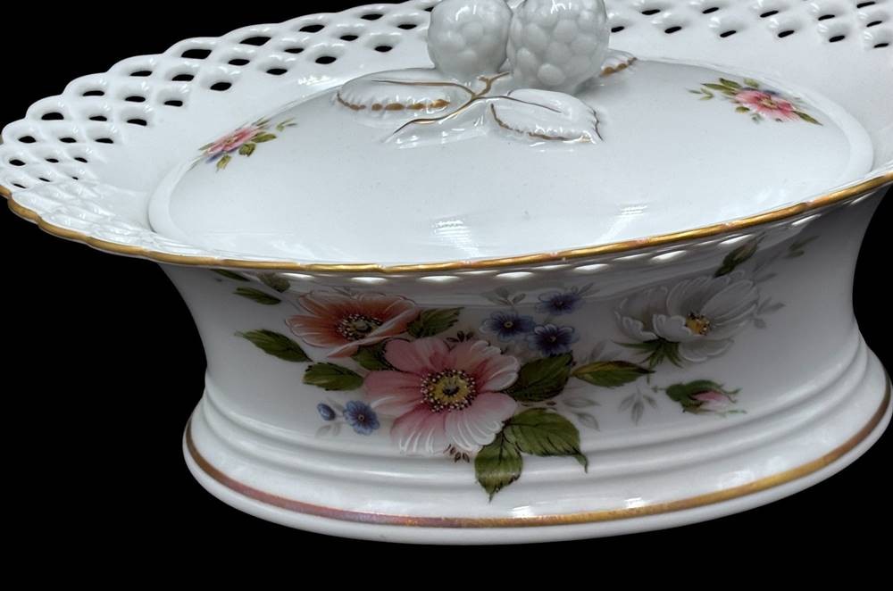 ovale Deckeldose "Wallendorf" Durchbruchrand, Blumenmalerei, H-9 cm, 21x17 cm [1]