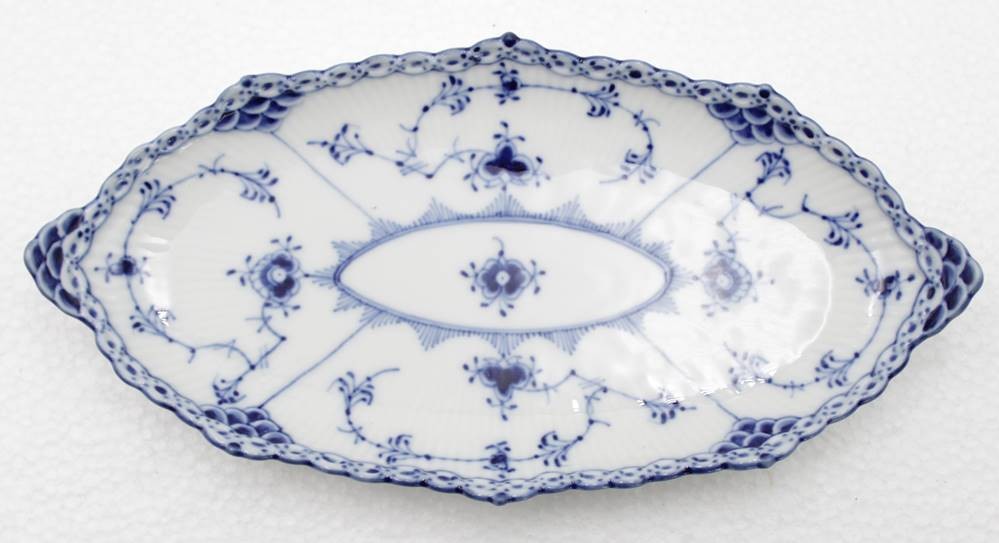 ovale kl. Tablett, Royal Copenhagen, Musselmalet, 1x Schleifstrich, 24,5 x 12,5cm [1]