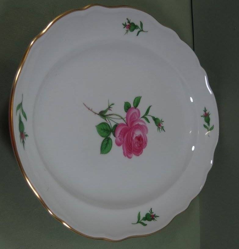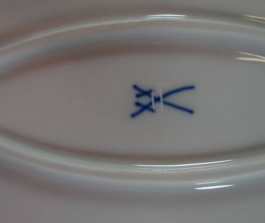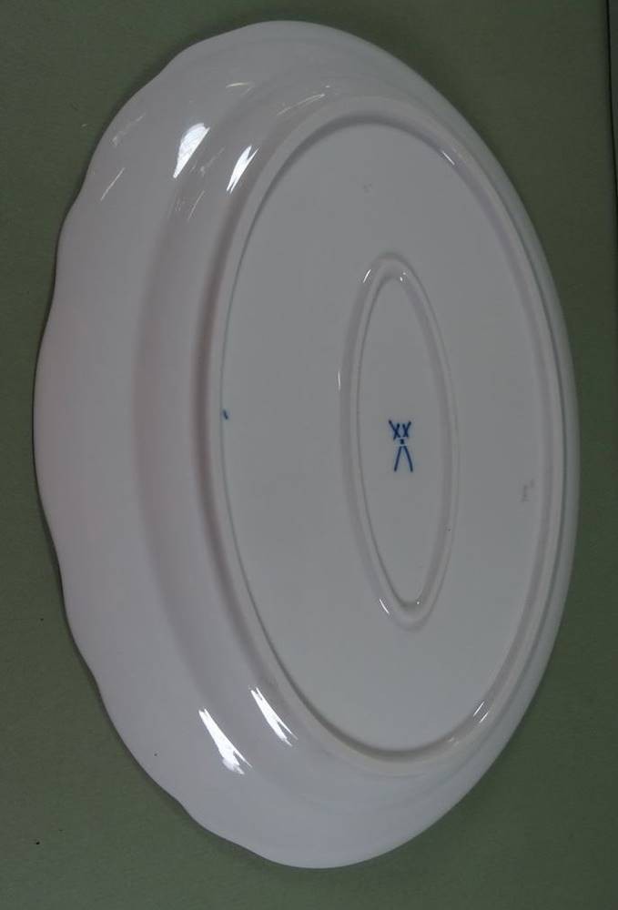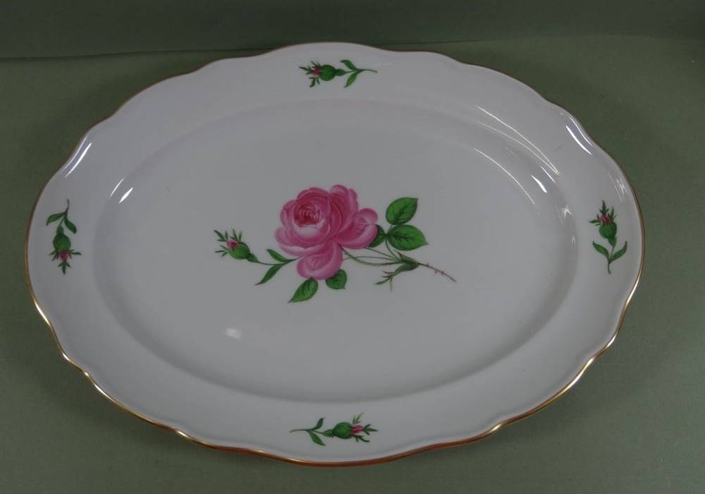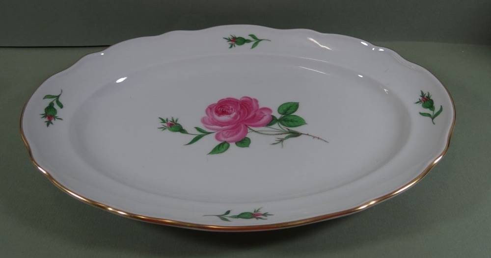 ovale Platte "Meissen" Rote Rose, 30x22 cm, Schwerter 2x durchschliffen [1]