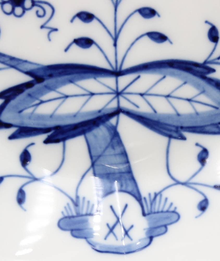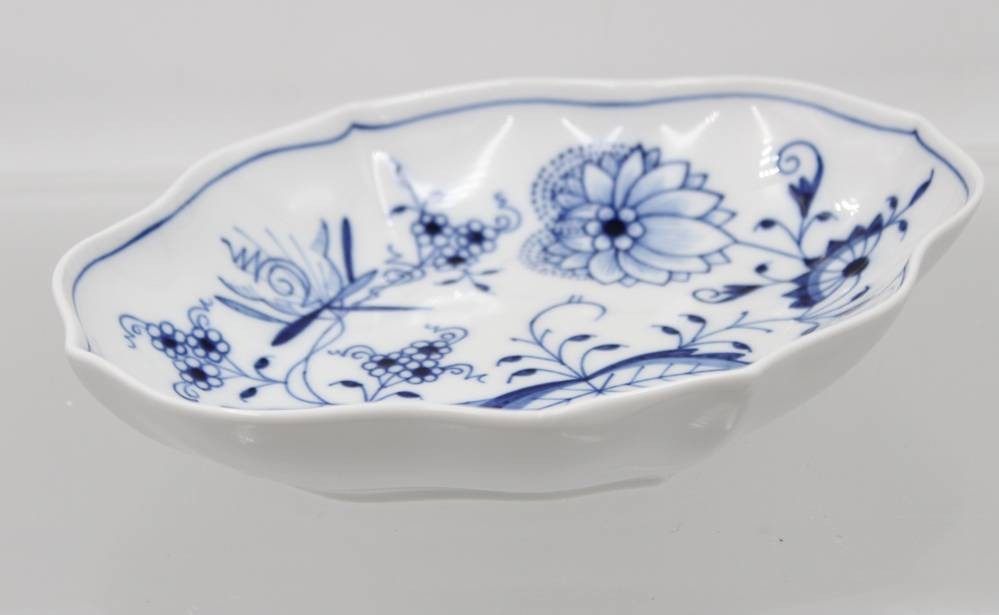 ovale Schale, Meissen, Zwiebelmuster, 1. Wahl, ca. H-3,4cm B-18,5cm [1]