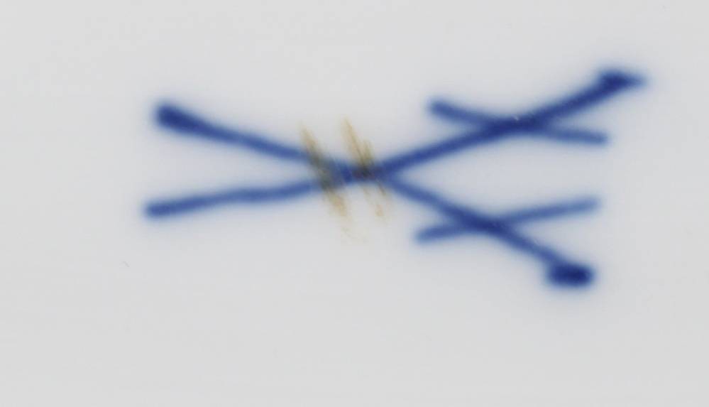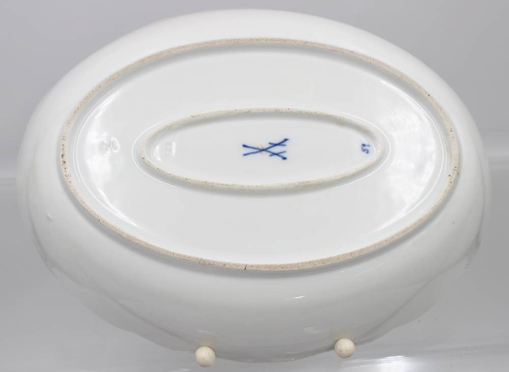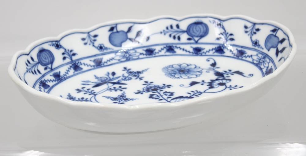 ovale Schale, Meissen, Zwiebelmuster, 2 Schleifstriche, ca. H-4,3cm B-26,8cm [1]