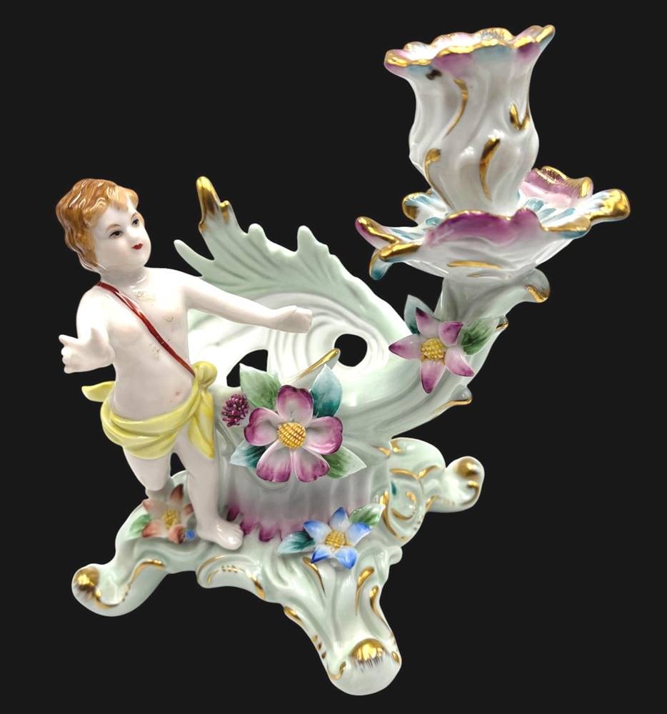 Paar figürlicher Kerzenhalter mit Putti, ungedeutete Blaumarke, H-18 cm, guter Zustand [1]