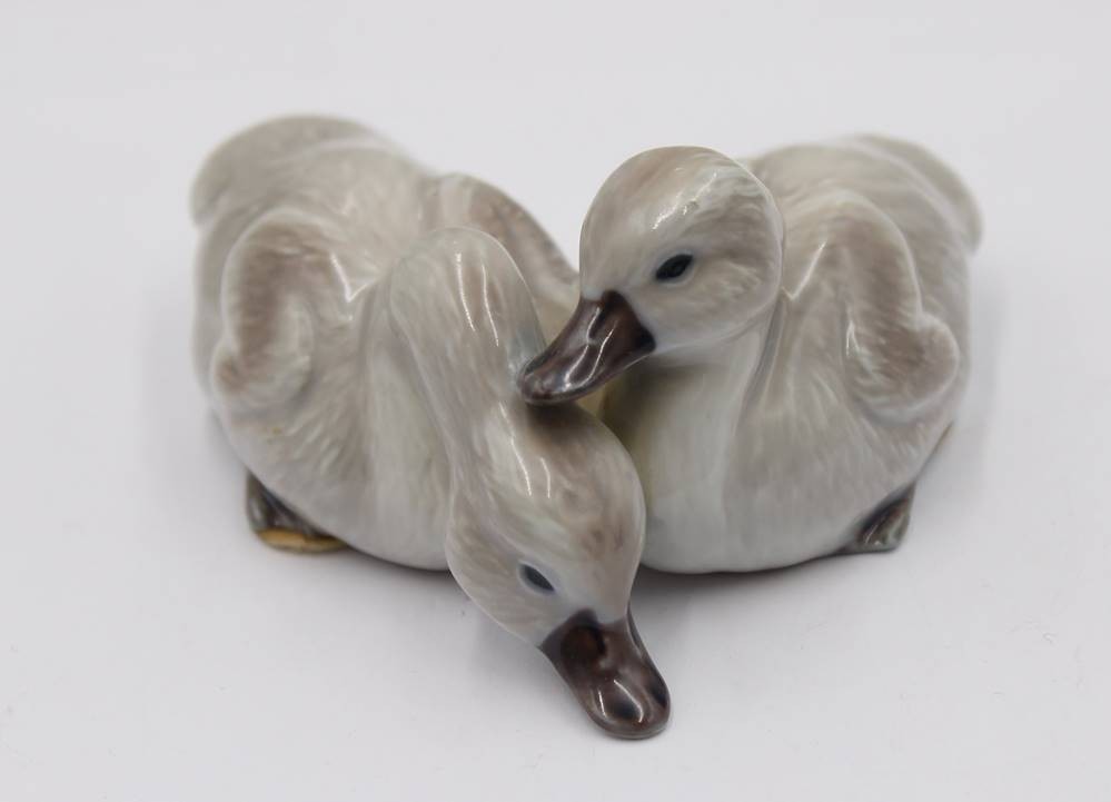 Paar Jungschwäne, Royal Copenhagen, leicht staffiert, Modellnr. 363, H-4,8cm T-10cm [1]