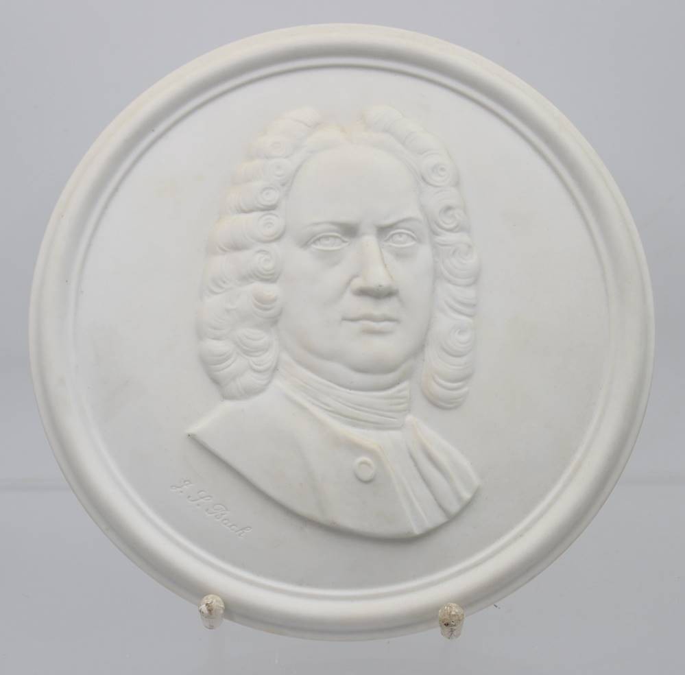Portrait-Reliefplatte, J.S.Bach, Classic Rose, Weißporzellan, ca. D-21cm [1]