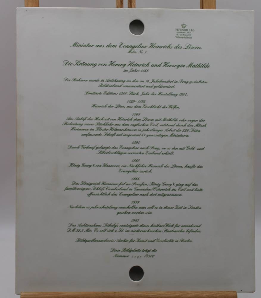 Porzellan-Ikone Heinrich, Evangeliar Heinrichs des Löwe, ca. 38,8 x 32,5cm, Nr. 1191/1500 [1]