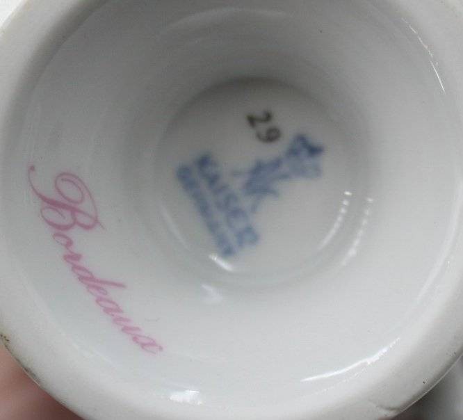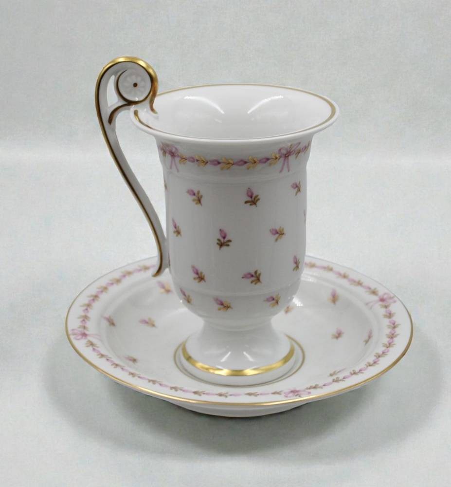 Porzellan-Kaffeetasse mit Untertasse, Kaiser, Serie Romantica, Dekor Bordeaux, ca. H-13,5cm [1]