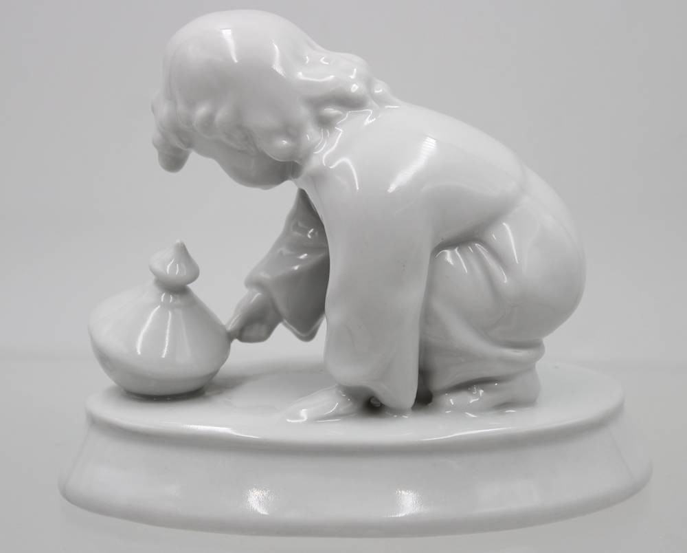 Porzellanfigur Kind mit Kreisel von Zsolnay . [1]