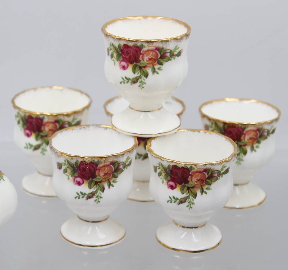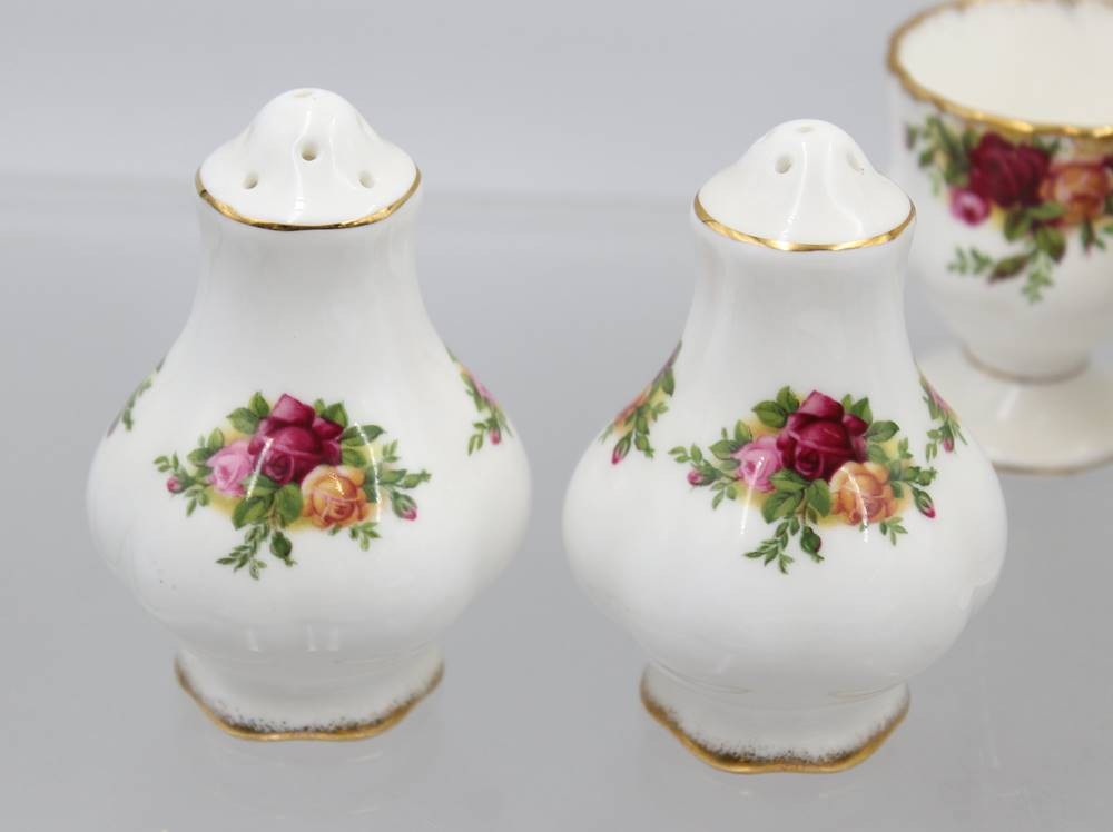 Porzellankonvolut, Royal Albert, Old Country Rose, Streuerpaar, 6 Eierbecher, Milchkännchen und Sauciere [1]