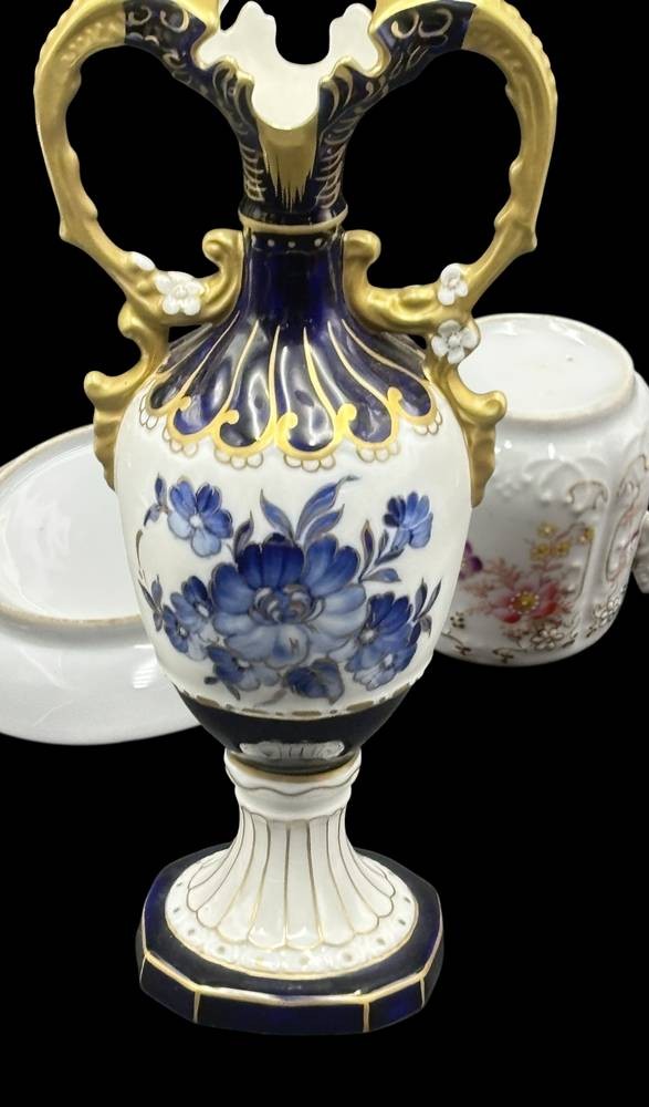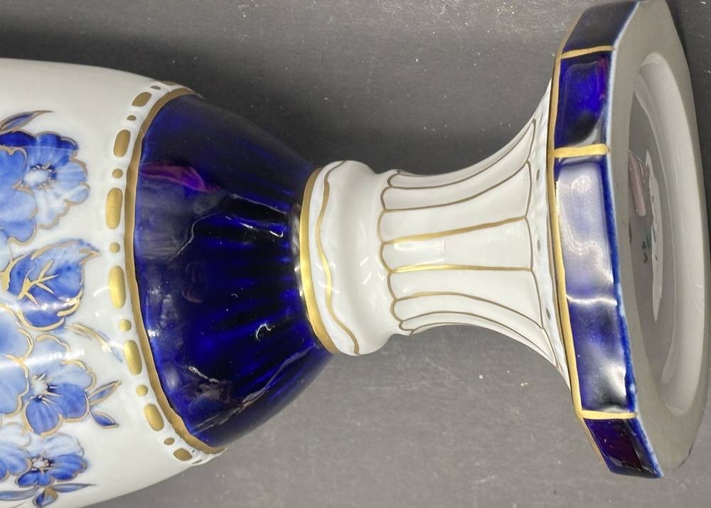 Porzellanvase von Royal Dux mit kobaltblauen und goldenen Blumenmotiven handbemalt. H-24 cm [1]