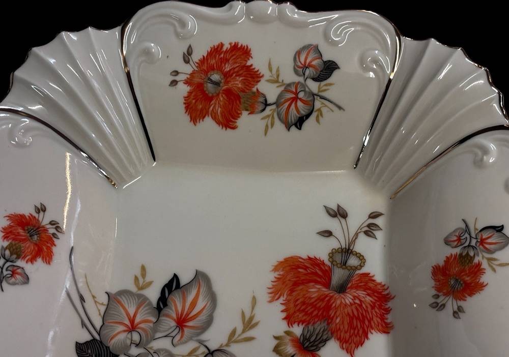 rechteckige Art Deco Schale, Blumen-und Reliefdekor, Sitzendorf, 6x30x26 cm [1]