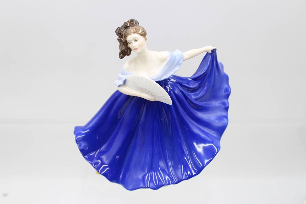 Royal Doulton, "ELAINE", 1979, Frau in dunkelblauem Kleid m. Fächer, H-16cm [1]