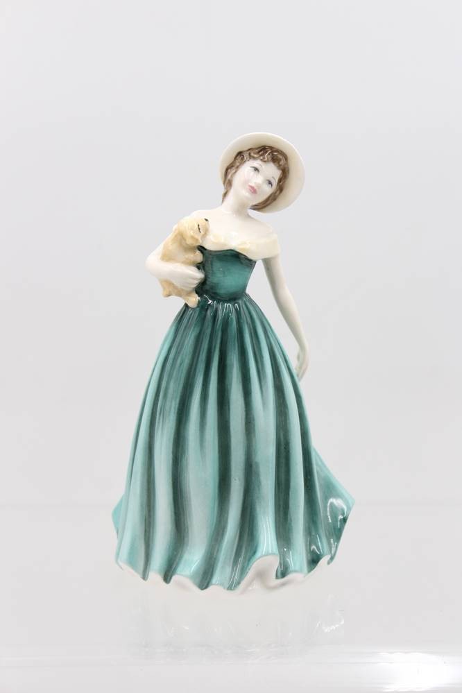 Royal Doulton, "ELEANOR", 2002, Frau in grünem Kleid m. Welpen auf dem Arm, H-21cm [1]