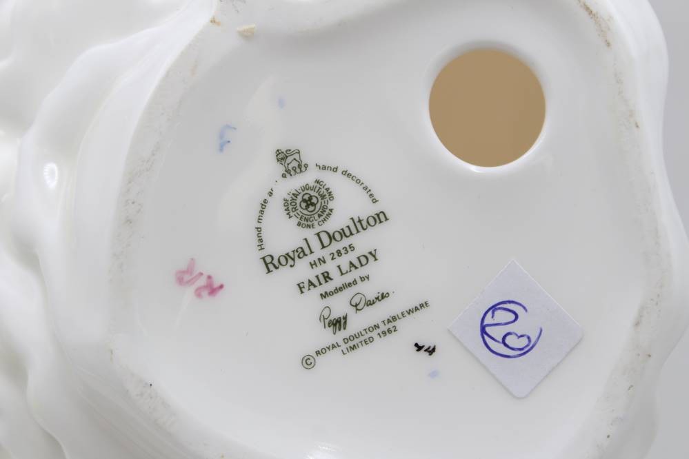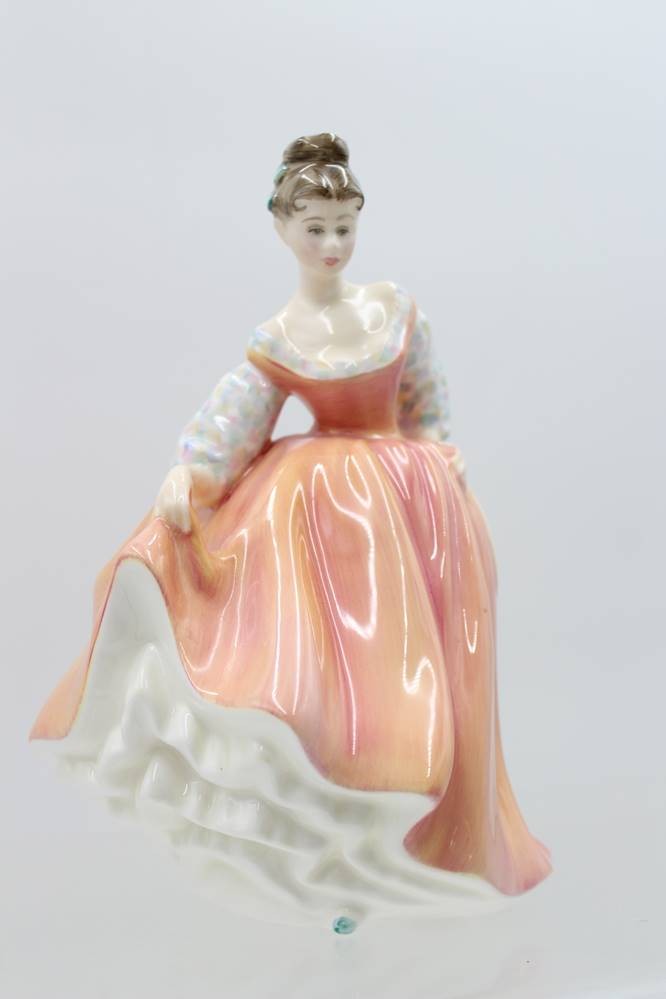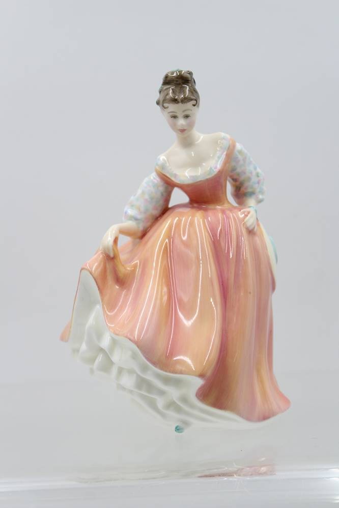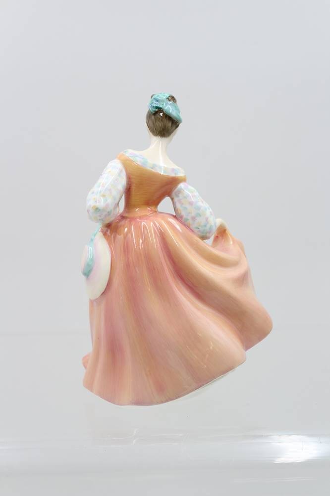 Royal Doulton, "FAIR LADY", (1962), Frau in orangenem Kleid m. Hut in Hand, H-19,5cm [1]