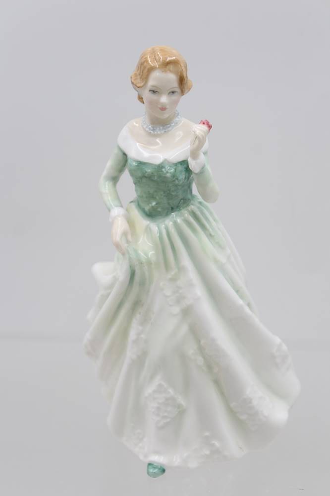 Royal Doulton, "GRACE", 1995, Frau in grün/weißem Kleid m. Blumen in der Hand, H-22cm [1]