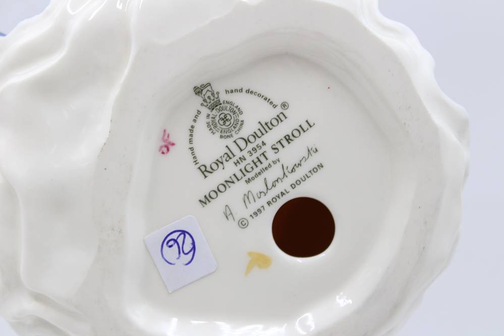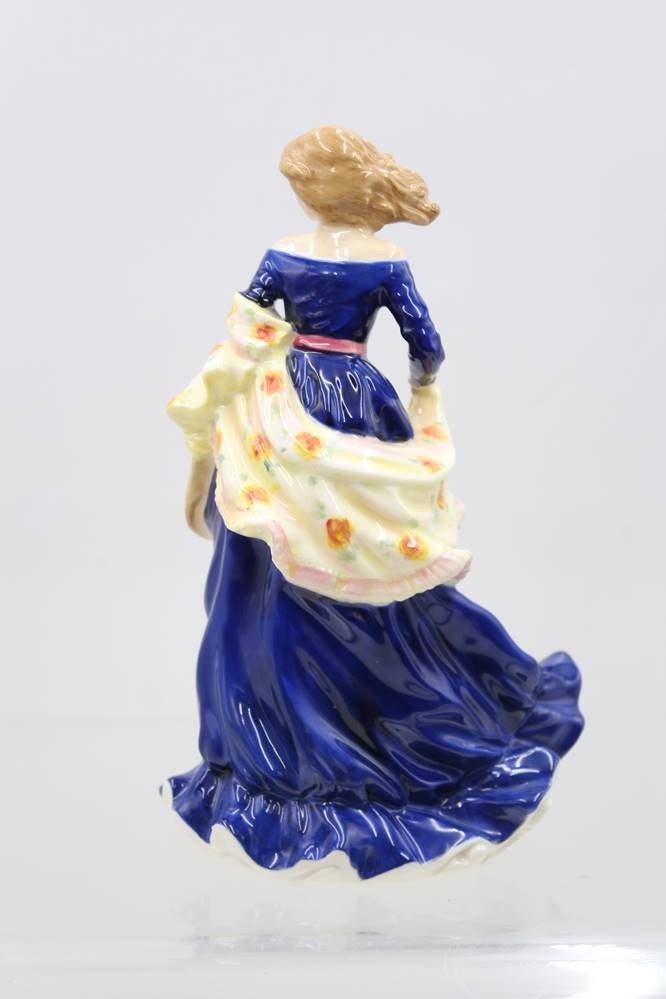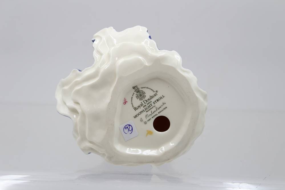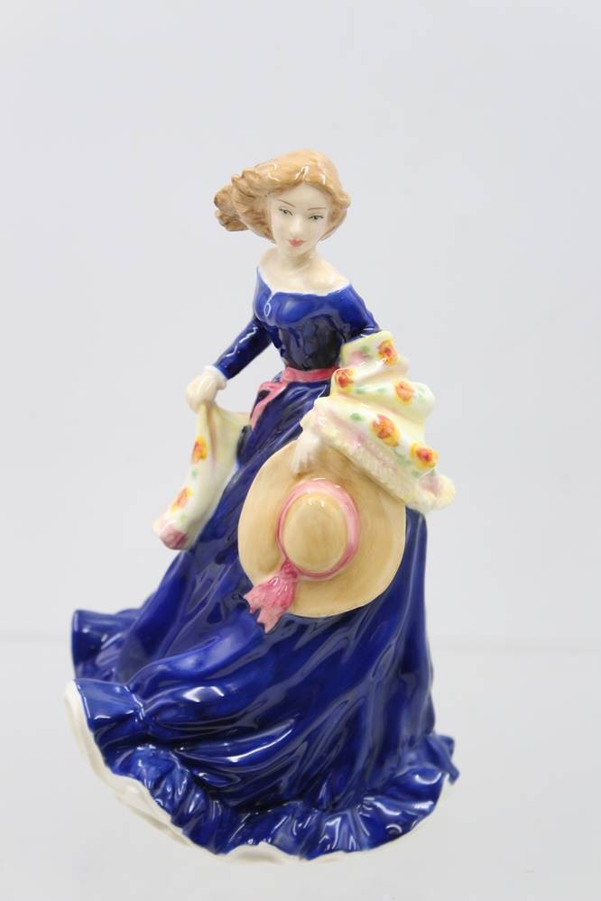 Royal Doulton, "MOONLIGHT STROLL", 1997, Frau in dunkelblauem Kleid m. Tulpentuch u. Mütze, H-20cm [1]