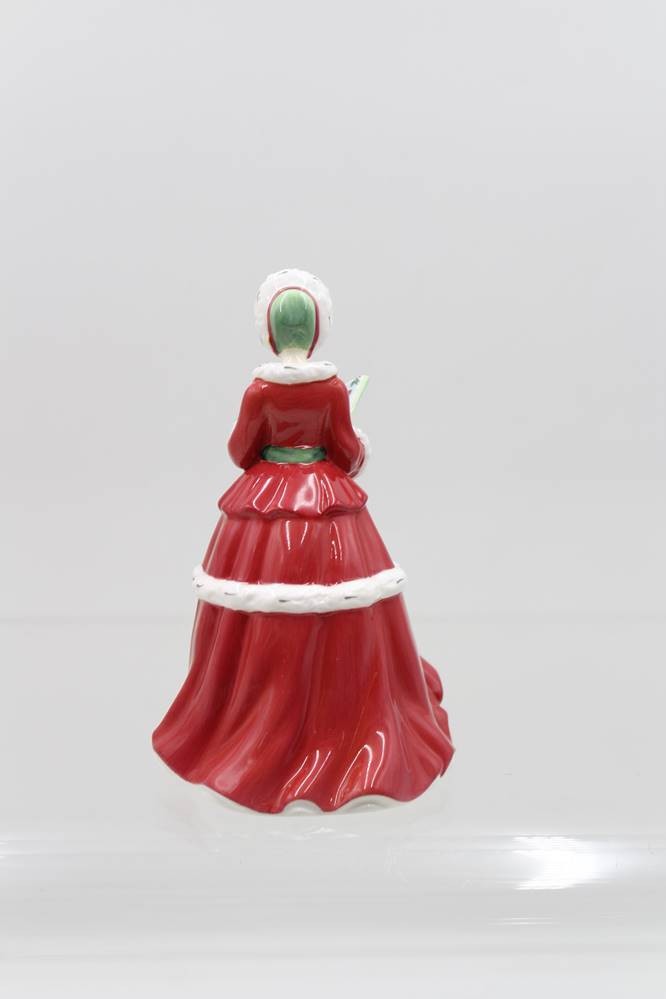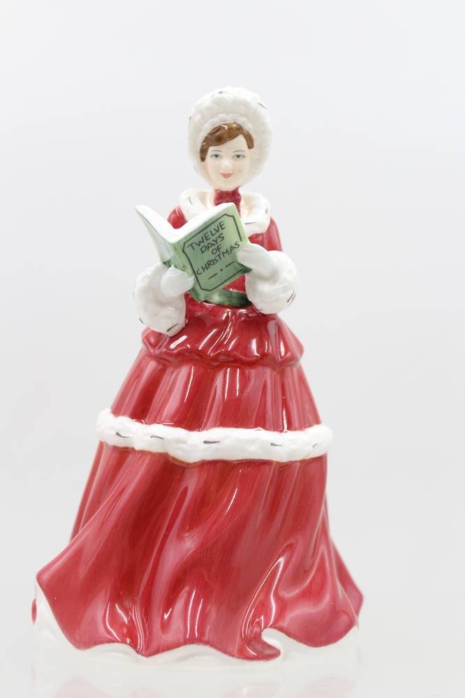Royal Doulton, "THE TWELVE DAYS OF CHRISTMAS, Frau in winterlichem dunkelrotem Kleid u. Pelzmütze m. Liederbuch, H-16,5cm [1]