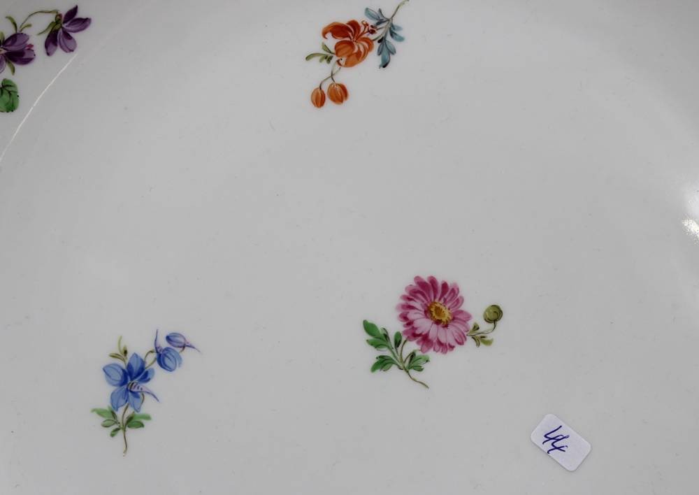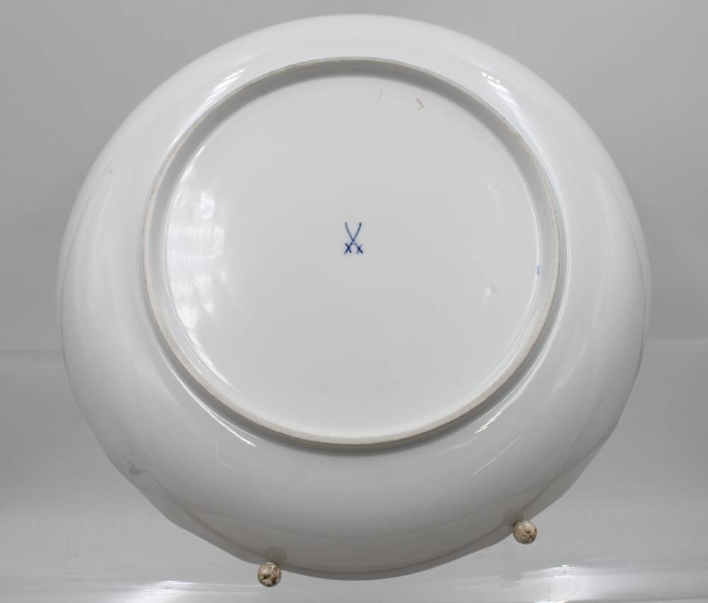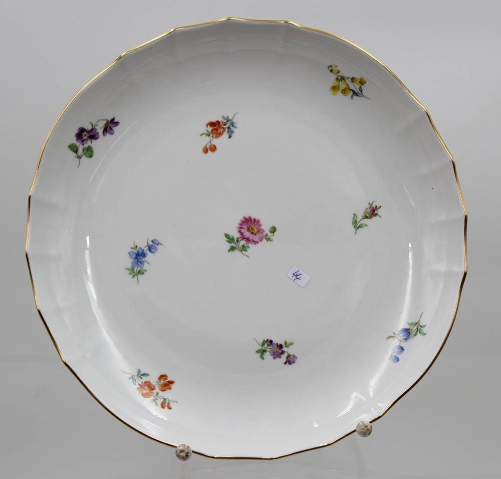 runde Schale, Meissen, Schwertermarke, Streublümchen, 2 Schleifstriche, D-28cm [1]