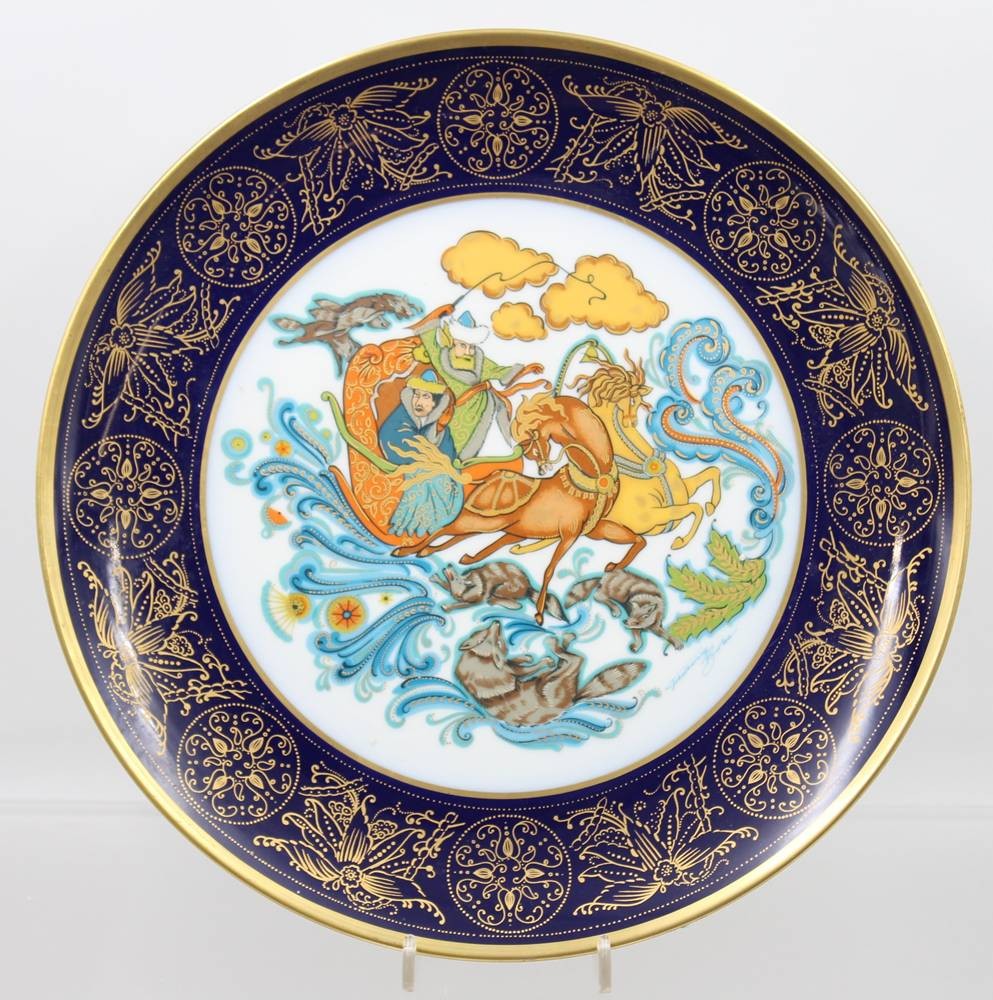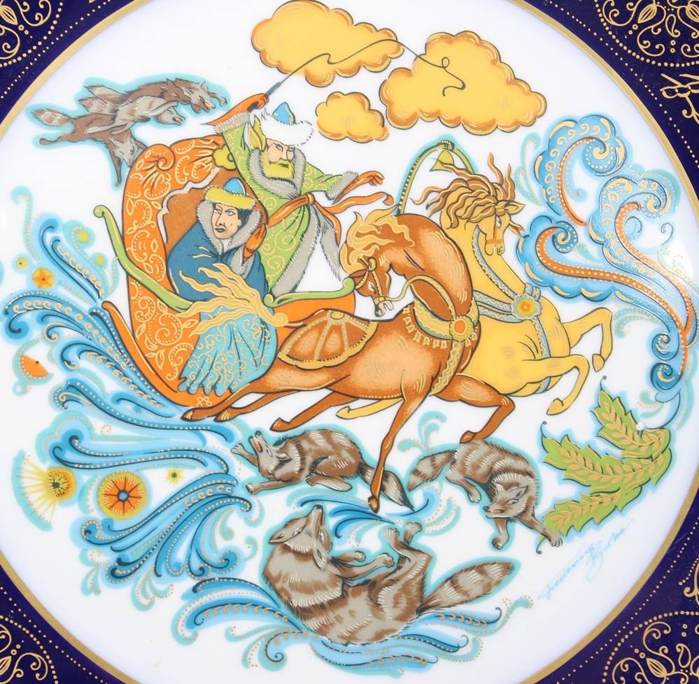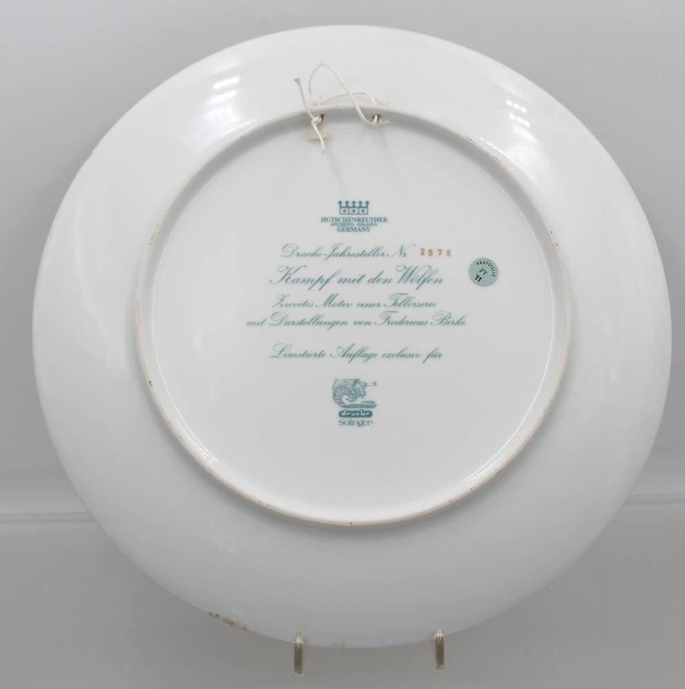 Sammelteller von Hutschenreuther Arzberg Bavaria für "Drache-Solingen", Nr. 2578, Kampf mit den Wölfen (von Fredericus Birke, D-30cm